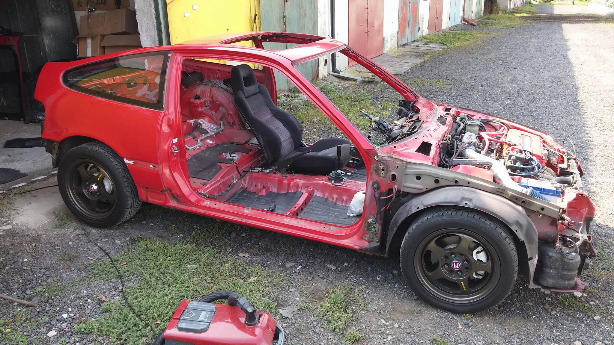 A po dlouhých hodinách tý snad nejotravnější práce je to za mnou a motor je konečně venku a kastle je téměř připravená do lakovny.