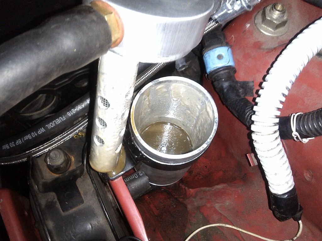 Takhle to v něm vypadalo po nějakých 100km kdy sem auto zrovna moc nešetřil. Měřil sem to a je to cca. 0,5dl směsi zkondezovaných vodních výparů, oleje, atd.