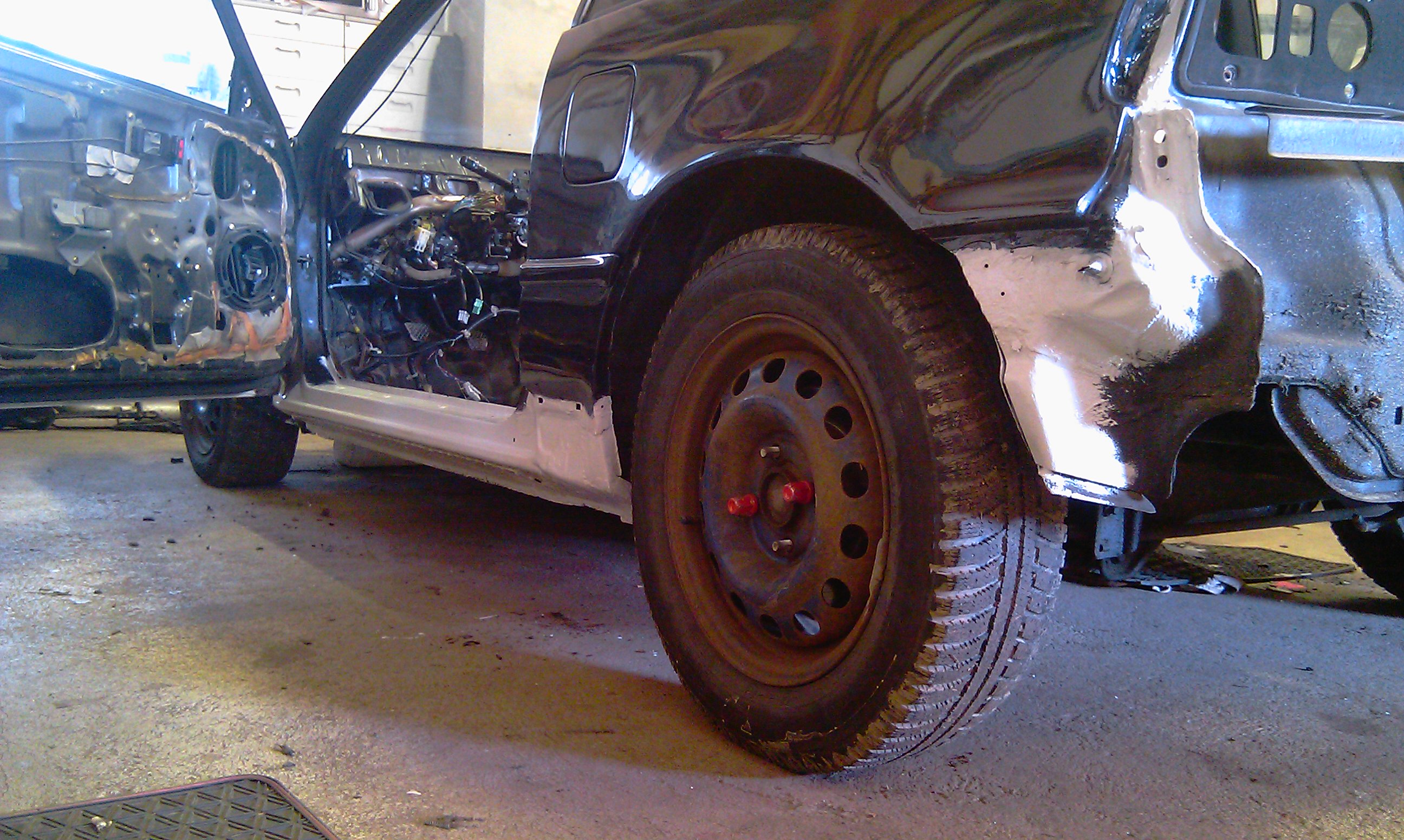 Tak po dlouhé odmlce zase něco přidám, sice toho moc neni, ale alespoň něco. Zatmelil jsem zadní konce prahů, aby tam nezapadával bordel ze silnice a vyndal oba motory.