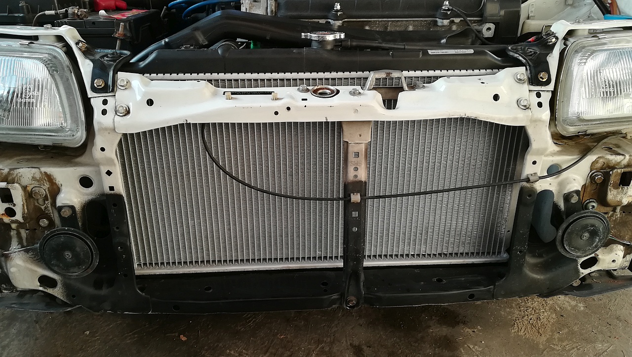 Konečně sem se taky dostal k výměně chladiče, který už byl na odchodu. Při tý příležitosti sem přehodil i přírubu na hlavě za tu kterou jsem si upravil pro montáž teplotního čidla.