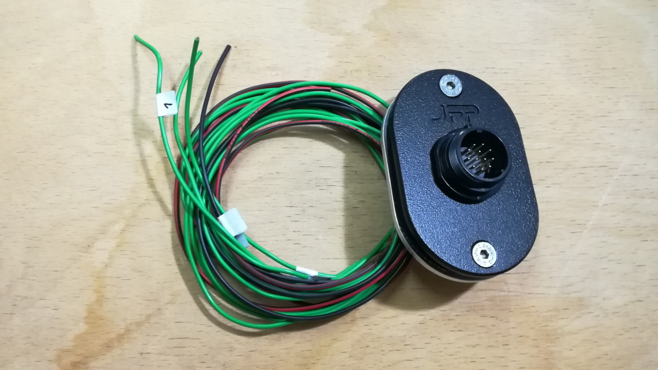 Zároveň sem namontoval svůj OLED zobrazovač MG-01XL. Pro snažší a rozebíratelnou montáž kabeláže k čidlům sem si vyrobil hliníkovou záslepku s 12 pinovým IP68 konektorem, která pasuje místo gumový záslepky a trubek klimatizace.