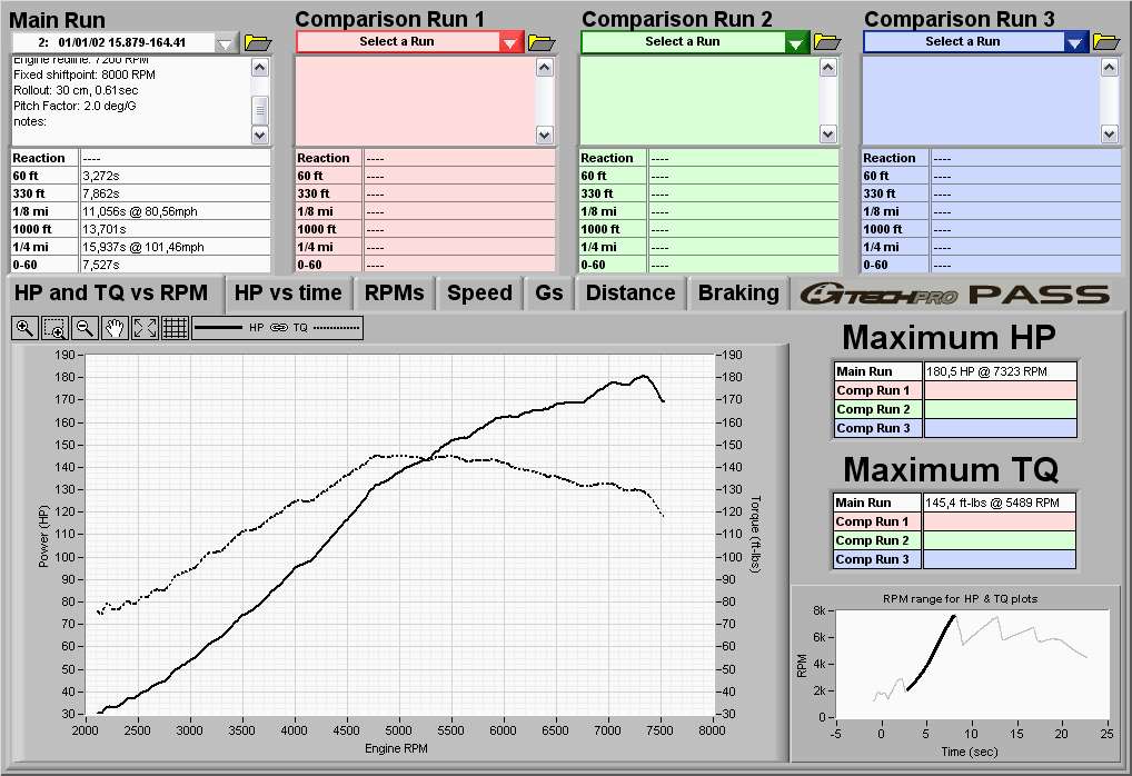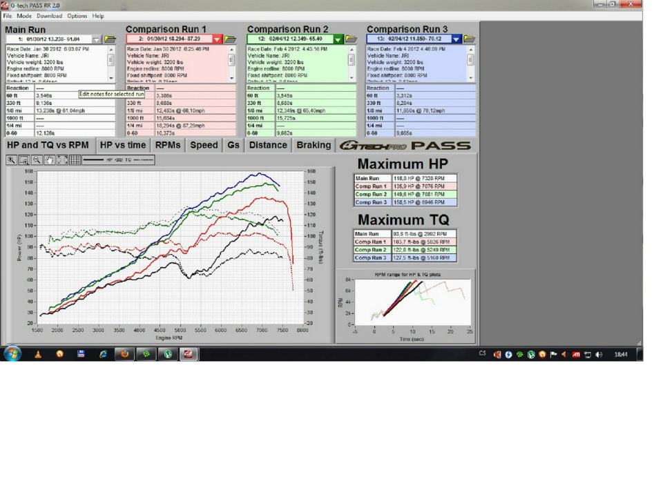Tak mam to merene Gtechem po prstavbe na ob1 prave Montym beztak i na tom stejnym useku, jak jste zkousely vy...podel dalnice smer na Brno.Takze upravy jsou OBD1 a vytvoreni mapy presne pro muj motor, manifold s klapkou B16A2, otevreny filtr, odlehcena remenice, silnejsi prumer kabelu ke svickam.Vim ze to neni zadna zasadni uprava, ale po odladeni Montym to opravdu jelo zcela jinak.On ten motor jel vzdy o neco lip nez jiny B16A1.Zkratka Gtech zmeril co zmeril a predpokladam ze je to whp...