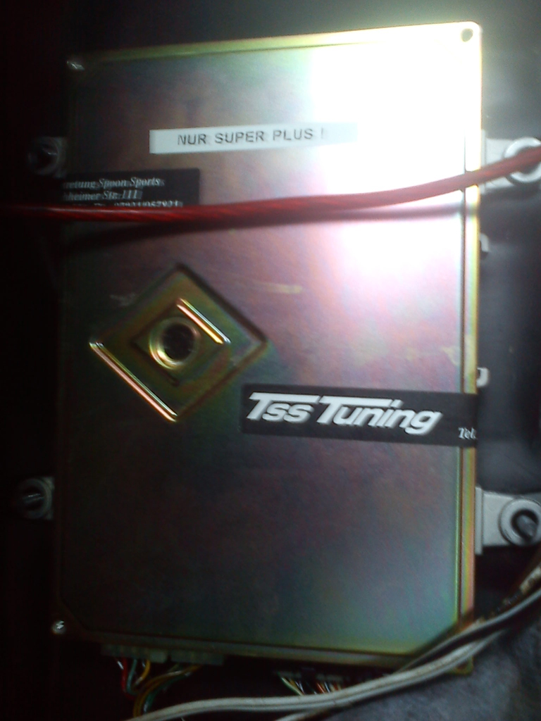 Byl jsem zvědavý jestli mám opravdu přečipovanou ECU, tak jsem se podíval. Když jsem oddělal kryt, koukalo na mě tohle. 2x zaplombovaná jednotka s nápisem TSS Tuning Werksvertretung Spoon Sport. Je možné, že tam mám chip značky SPOON Sport?