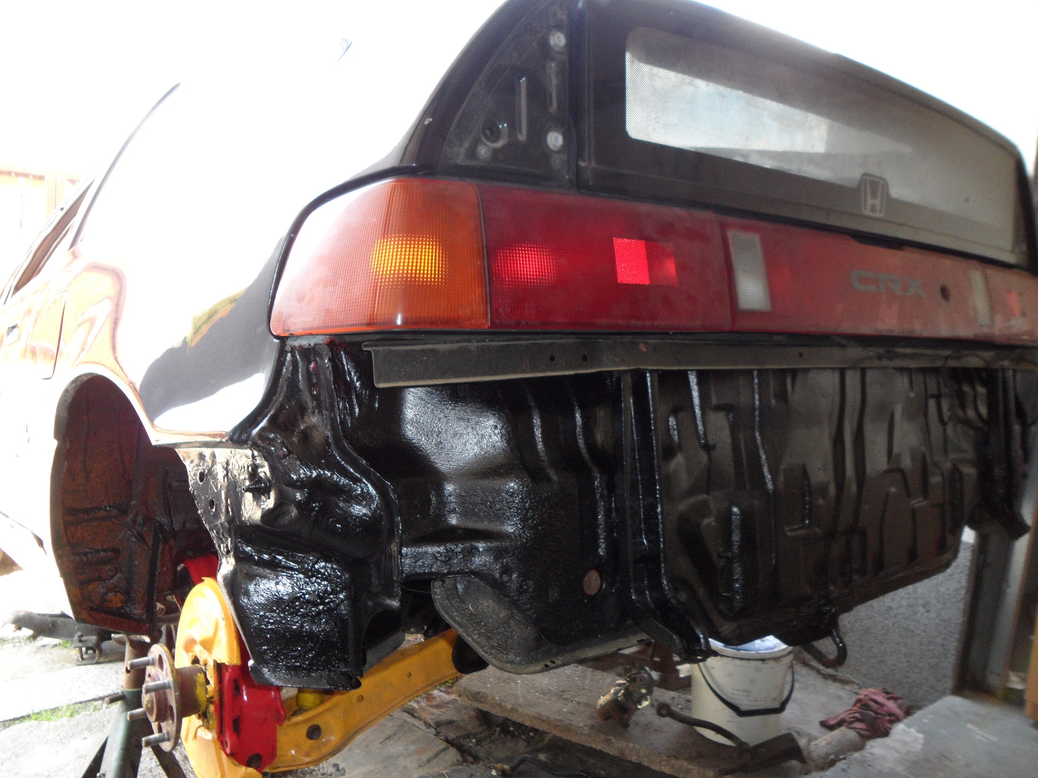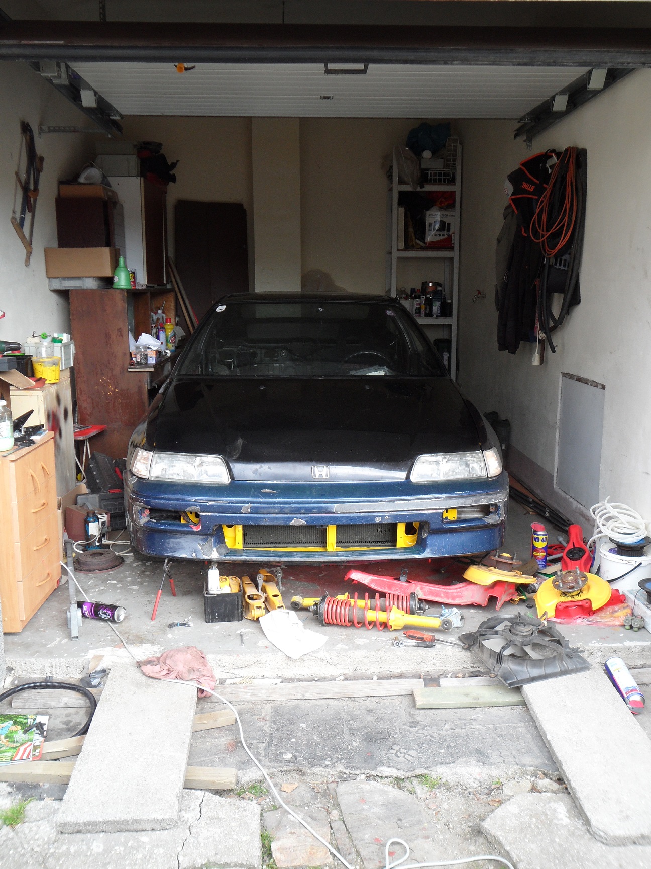 aby se neřeklo, že se pořád flákám, tak sem také něco přidám :D CRXo konečně převezeno z dílny domu, nahodil jsem konečně i zadní nápravu, vyměnil silenty na tyči řazení za energy suspension,které mi daroval skřítek :D něco málo nastrojil, dozadu šly nové kotouče s deskami, akorád jsem ještě nestihl nastříkat brzdiče :D vytřely se podběhy a spasoval předek.