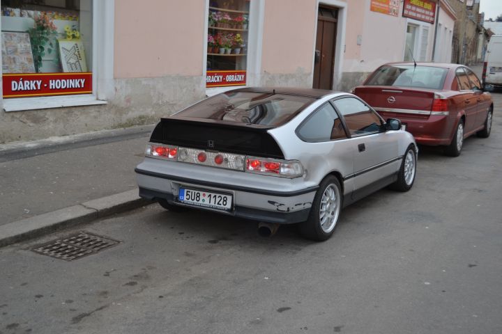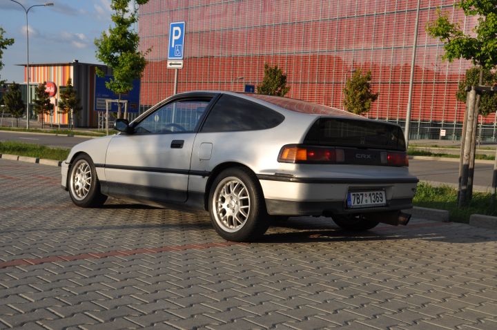 Teď nějakej ten příběh. Po *honda* toužím už od doby co mám papíry, a teď, po dvou letech to konečně přišlo. Přišlo to ale celkem náhodou, toužil sem po C5G ESi, ale těch není moc, a kamoš má CRXu nějaký dva roky, a to auto má něco do sebe :) . Pak mi jednou tady na klubu ukazal inzerát na tu stříbrnou za 15tis z Teplic (Brno-Teplice, solidní výlet) po necelém týdnu váhání jsme pro ni jeli, já jel s tím že když už jedem takovou dálku tak si ji i odvezem, a taky se tak stalo. Sice za tu cestu Cérka sežrala 4l oleje, ale jinak bez problémů, teď po výměně motoru je to parádička :) .