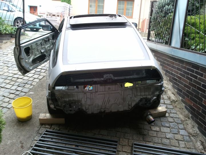 Dovolil bych si jeden obrázek, cesta od klempíře - byl sem tam kvuli zadnímu blatníku (byl trochu bouchlej) a kvuli ostřiku zadního okna, stejně k němu nebyly ani hadičky, takže nemě vůbec význam, a stěrač tam taky nemám