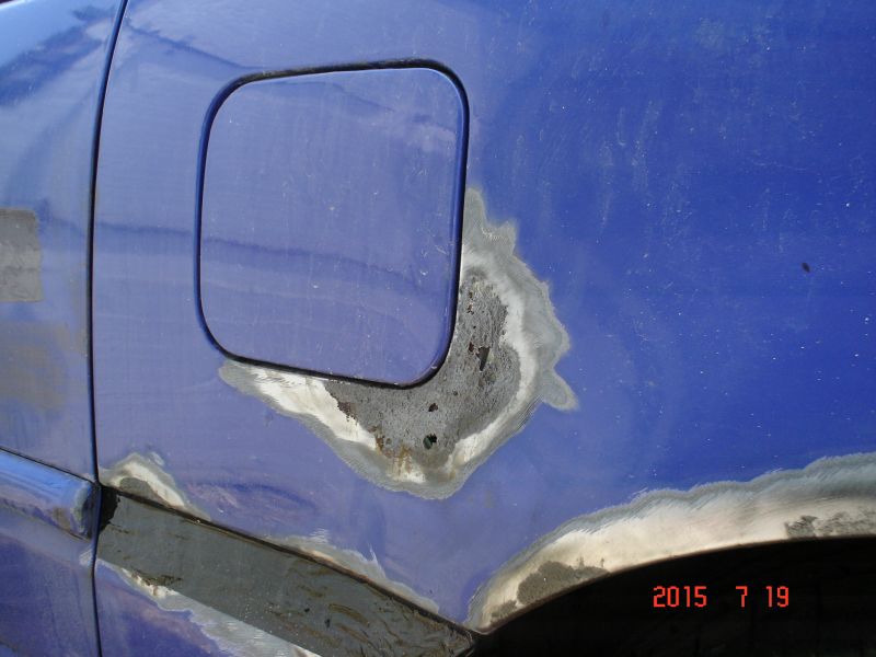 V roku 2015 som doplatil na to ze som auto zanedbaval a znacna korozia sa nemilosrdne zacala drat na povrch. A tak som sa rozhodol ze s tym zacnem nieco robit. Ako prvy som si vzal na musku siber - po otvoreni mi padala hrdza do vlasov a oci a navyse tade zatekalo. Ked som vsak zacal opravovat siber objavil sa iny problem - od zadneho lemu mi odskocil obrovsky kus tmelu a v aute zoatala po hrdzavom plechu len obrovska diera - cely lavy zadny kus pod smerovkou bol pretmeleny velkym mnozstvom tmelu. Teraz uz viem preco bolo auto predoslym majitelom prestriekane do fialovej