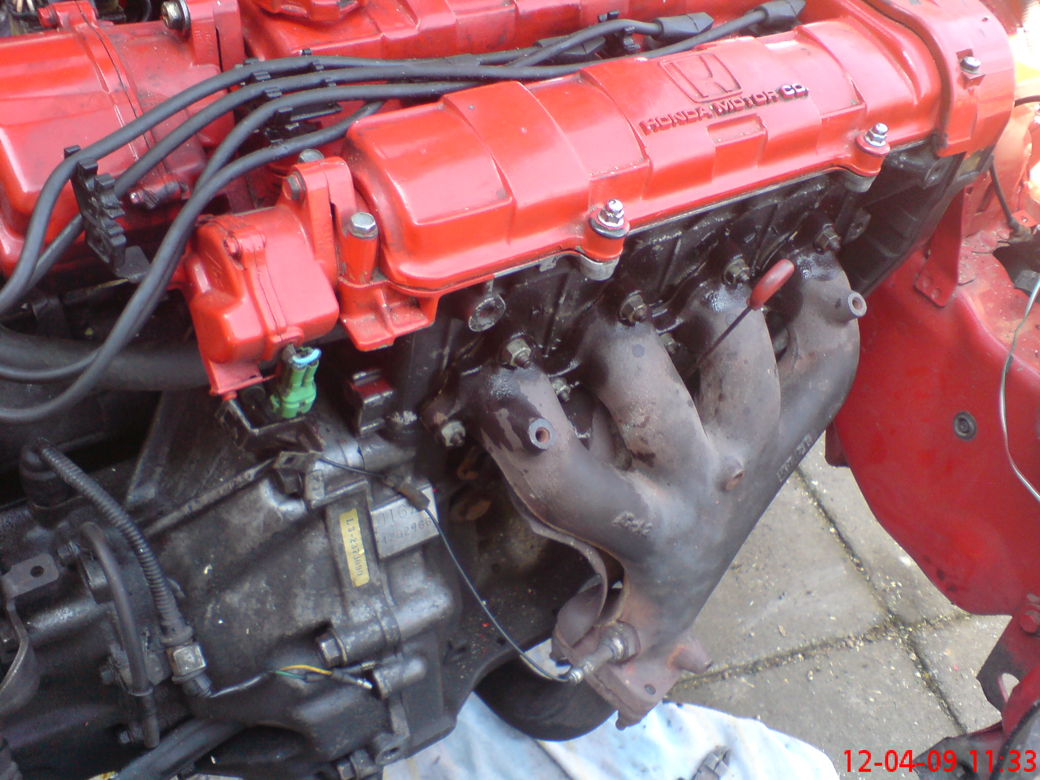 do pacova.Takto jsem poznal mooonwalkera,který mě nejprve svezl a pak mě nechal řídit.Byl to úžasná pocit,a crx si mě tím svým jízdním projevem získalo.Ale bohužel,pak nakonec neprodal to úžasně zachovalé crx,tak jsem hledál dál,a prostě nic zajímavýho dlouho pak nebylo nikde.Až se mi po čase ozval zas mooonwalker,a poslal mi odkaz kde byl inzerát.To crx mě hned zaujalo.Tak jsem vyrazil na obhlídku.Tentokráte k třešti,kde bylo crx schovaný pod plachtou v jedný malý vesnici.Podrobně jsem zkoukl stav,bylo tam bez motoru a pár věcí chybělo,ale nevím čím si mě tak získalo,asi tím,že nebylo seriový jak ty předtím co jsem měl možno vidět.Pár dní jsem přemýšlel a nakonec jsem si pro něj dojel s podvalem a odvezl jsem si ho na chalupu,kde mám vybavenou dílnu,věděl jsem ,že na něm bude spousta práce,ale přece jenom už jsem měl něco za sebou tak jsem do něj šel.Nejprv začal boj s scháněním vhodného motoru,v TP byl typ D16Z5,tak jsem začal schánět.Pro motor jsem si dojel do hradce králové,kde už byl vyndanej z černího crx,které už bylo bohužel rozřezaný,jen jsem viděl motor v běhu na videu,ale nabízel mi k němu spustu dalším dílu,tak jsem to risknul,a dobře jsem udělal.Když jsem nadšenej po dlouhé ceste na vysočinu dovezl na kárce motor s převodovkou,začal jsem plánovat,co vše na něm budu dělat a co je potřeba dát do kupy,aby mohlo vyjet do provozu.V provizorních podmínkách jsem začli s kamarádem radkem,plánovat jak tam nacpat motor,měli jsem tam jen "kočku" na zvedaní,tak jsme ztloukly "kozu"na to pověsili "kočku" na to na řetěz motor a ze zhora jsme ho tam pomalu pouštěli.Když byl na svém místě,nandali jsme poloosy,ramena,pak jsem vyhrabal elektroinstalaci,a začal vše zapojovat,což mě docela bavilo