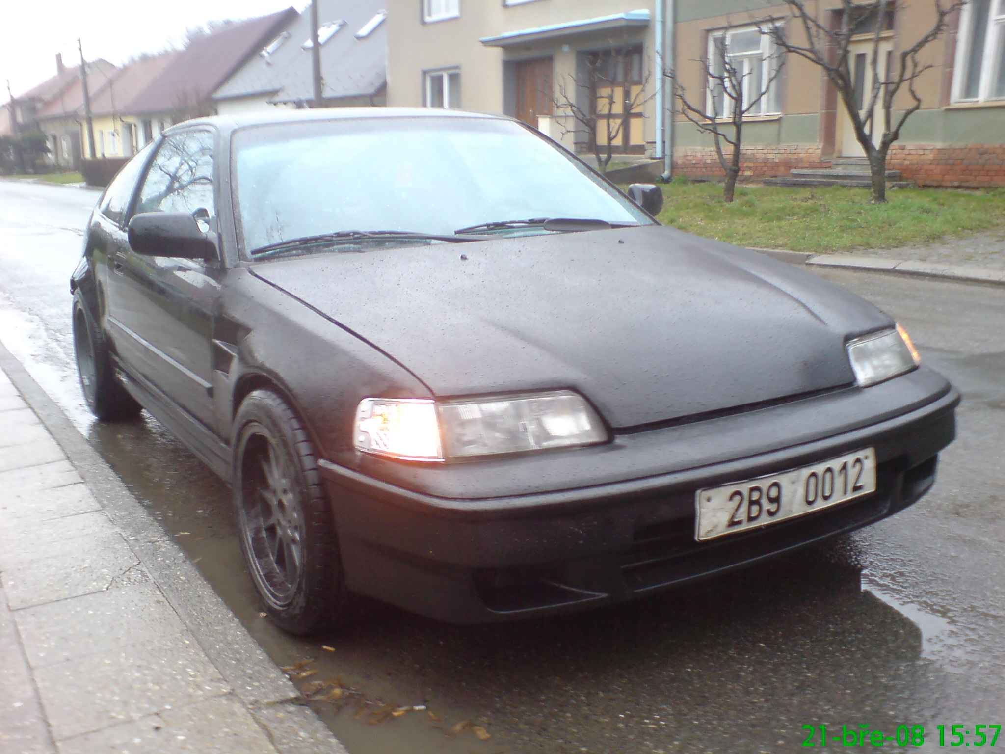 Po téměř 4letech „zhaněni“ a vyplněni stesku aspoň kroskou Honda CR250R(100kg,60koni) se mi ozval Tomáš,jestli mám pořád zájem o jeho swaplou CRX o kterou jsem jej po celou dobu nenapadně uháněl.Nervózně jsem se zeptal co za ni chce a po odpovědi:“40tis“ jsem neváhal a už sepisoval inzerát na zmíněné moto.Do třech dnů bylo pryč a ja si jel pro svůj sen.Ikdyž nevypadala bůhví jak vabně,ja byl rozhodnut z ni udělat krásny auto.Bohužel byly na kašu čepy,brzdy,motor docela žral olej+tekl pod hlavou(spotřeba cca 2,5l na 10 000km),karoserie mela ťukanec na levém zadním blatníku,zadní lemy začínaly kvést a řidičovi dveře žádaly též výměnu.Ale to mi nebránilo těch 30km domů zkusit poprvé jízdu ve vtecu.Byl jsem naprosto unešen… usměv,který se mi vykouzlil po zjištěni,že vlastním přímo ten konkrétní kousek,co mě učaroval a dovedl do hondiho Světa,je zrovna můj.No ci si budem povidat,ze?