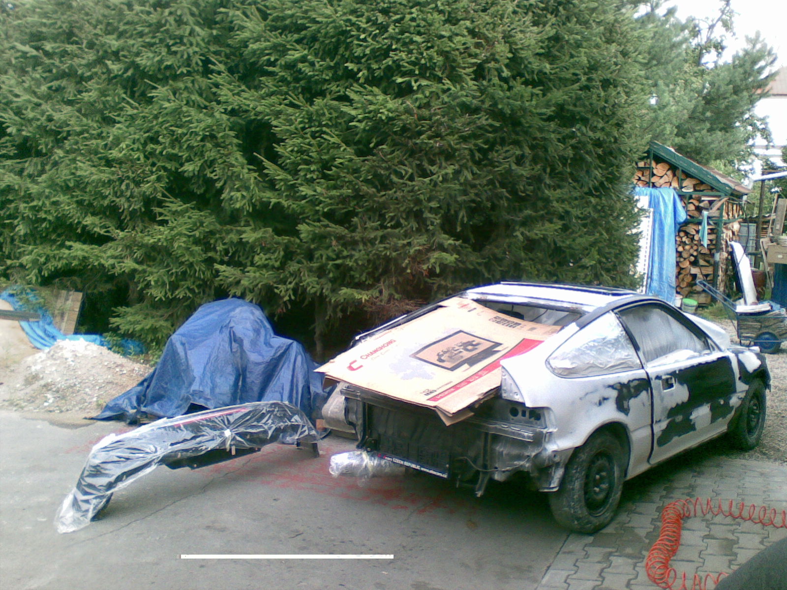 Auto je teď tedy stále v ošklivém kabátě. Peníze na nový lak už jsou ale v kupě připravené a uložené v obálce..Tak že jen čekám až se dořeší ustájení a podaří se mi pořesit si garáž na stálo. Nerad bych dal auto do laku a pak ho parkoval někde venku před barákem.