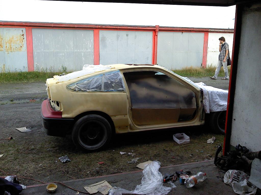 Začalo to ještě před děláním autoškoly kdy jsem zaslechl o CRX a říkal si "páni,malej obsah a takovej výkon a ten vzhled-wau!" a to mě drželo,nic jinýho sem jako první auto nechtěl,pořád jsem snil o crx,jenže jako student bez podpory rodičů jsem si jej nemohl dovolit (60 tis a více) tak jsem hledal a nakonec jsem se rozhodoval zda civic 4g nebo suzuki swift,hledal jsem už podle obsahu/výkonu a vybral si červenýho civica v mostě,kam se následně jelo.Odtamtud jsem si vezl své první auto,za své peníze a ten tah a to jak sedíte nízko na silnici...samozřejmě nepopsatelný zážitek.Vše pro mě bylo neznámé a začal jsem se učit co a jak,kde a proč...po 3měsících se mi naskytla možnost silnější verze a to 1,4 dual carb 90koníků což znělo slibně...toho jsem tedy zakoupil a začal dávat dohromady,bohužel kastle totálně sežraná tak se po půl roce sehnala vyvařená a tak to šlo ... přeskládal se civic do jiný kastle za 14 dní na zahradě...zhruba po roce kdy jsem měl už civica připraveného téměř na lak jsem přejížděl a nevšiml si paní ve felicii,což se mi stalo osudným a po roce tvrdé práce byl civic zničen :'( takže se začala řešit kastle...(opět) a nakonec se naskytla kastle CRX o kterém jsem vždy snil,s tim,že je padlý motor a vyrezlé lemy,kolem nádrže a prahy,takže klasika.Druhý den od bouračky se sundalo vše z civica co bylo třeba a jelo se do garaáže kde se začalo vyvařovat a skládat do "nové" kastle. Po měsíci tvrdé denní práce a výpomoci kde šlo vyjelo CRX s 1,4 motorem po vyvaření i celolaku...všem moc tímto chci poděkovat,jelikož to bylo hodně náročné...
