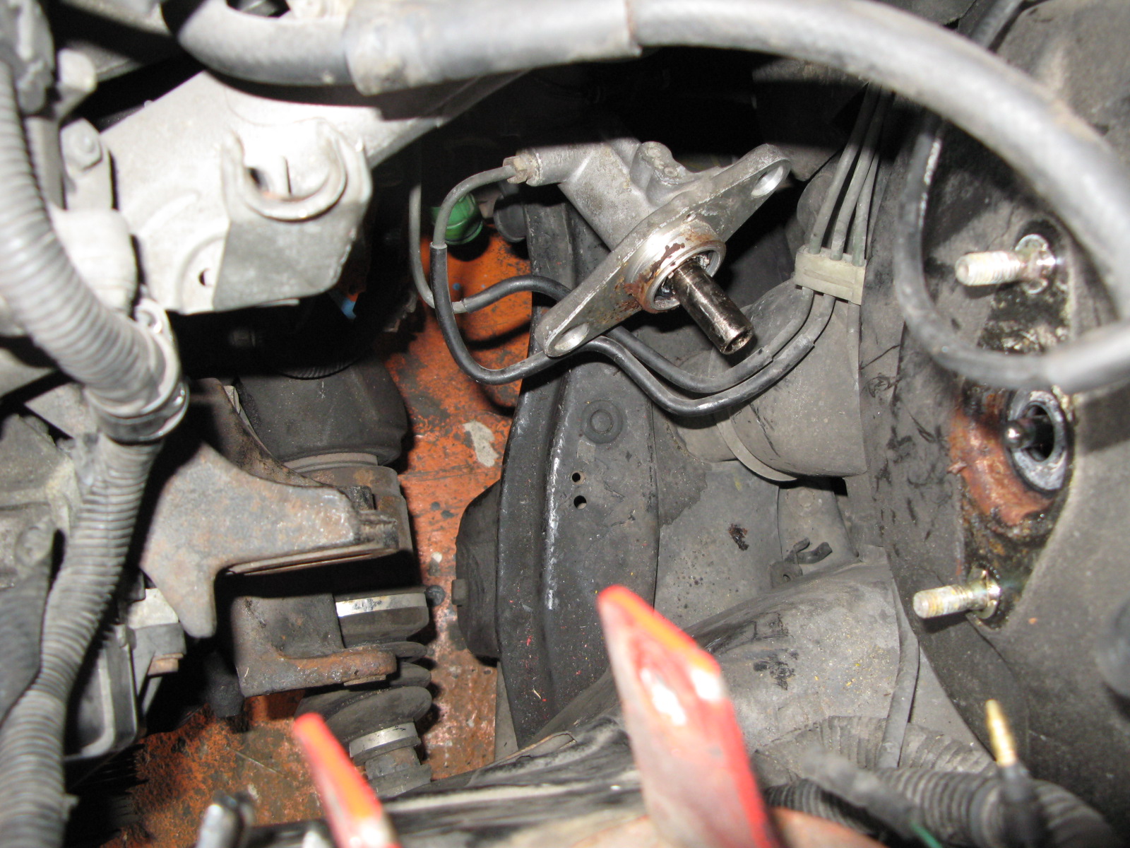 Nejlepší je to když je ta poloosa venku, sice trochu víc práce, ale časově kdy pak právě vyplejtáš ježka z klece to může bejt rychlejší. Trochu prasáckej styl je rozpojit horní čep a když vycvakneš poloosu od krátkej poloosy s ložiskem, sundáš spodní vidličku tlumiče, tak zatáhnout za těhlici k sobě a máš vytaženo, pak už s poloosou libovolně hýbeš a altík jde ven jak nic.
