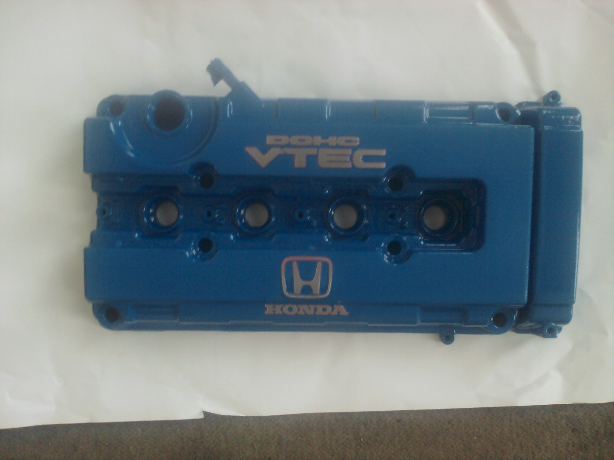 Takhle jsem ten motor přivezl, takže práce na něm teprve začne, víko a ostatní doplňky přijdou samozřejmě do modra, červený silikon přijde oříznout a dál budu používat ten černý (stejně je kvalitnější), takže ten se ztratí. Musím zkontrolovat ventilové vůle, zkontrolovat hlavu, rozvody, vodní pumpu atd. atd., dál napasovat sání i výfukové svody. Práce začne až po honday, do té doby D16Z5, který bude pak na prodej.