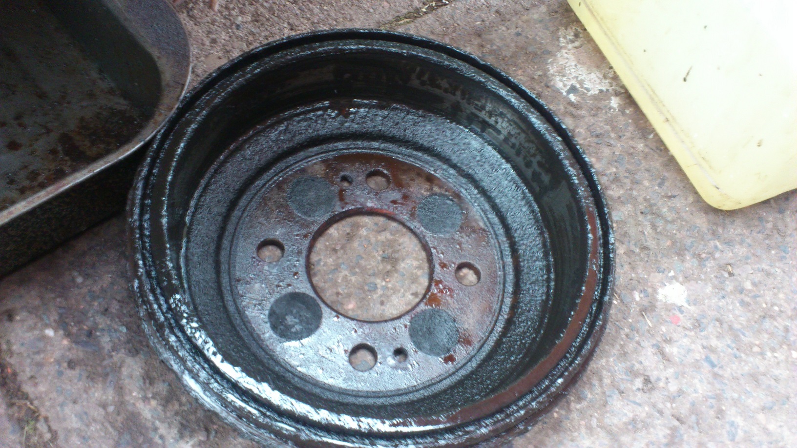 Dnes jsem céro převzal a pustil se do oprav *fin* Musel jsme začít brzdama, protože prasátkem vytekla všechna kapalina a nebrzdilo to :roll:. Takže jsem vyměnil vyteklý prasátko v levým zadním kole, nalil novou brzdovku + obrousil a natřel buben :). Zítra jdu na druhou stranu, která je zarezlá :roll: