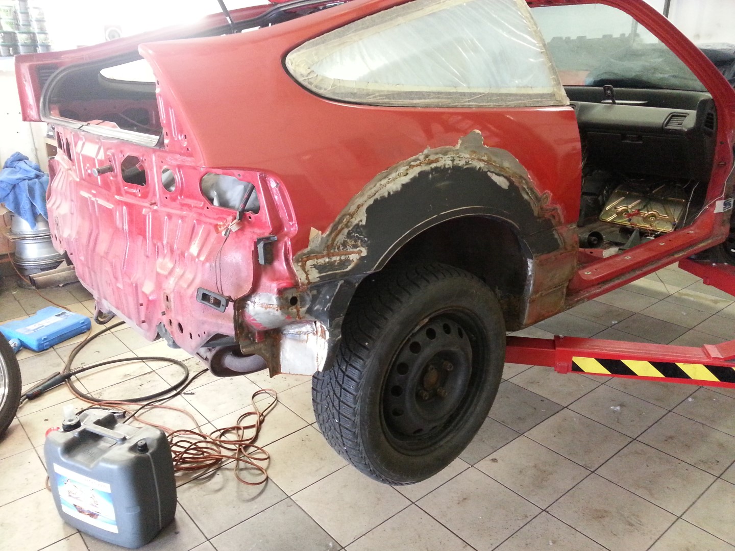 Auto medzitym prislo od posledneho klampiara a ja som sa mohol pustit do gitovania karoserie, gitovanie trvalo 2 tyzdne, nikdy v zivote to uz nechcem robit na celom aute. nahodili sa dvere dopasovali veci brusilo sa, prasilo sa, rezalo sa, zvaralo sa. Uz som bol taky nasrany na to auto ze mi bolo jedno kto kedy a ako ho nastrieka do cervenej, hlavne nech sedi farba s technicakom a cim skor skoncim to trapenie. Napokon necakane jeden vecer sme to cele hodili do plnicu a zistili ze karoseria je vygitovana pomerne dobre az na par detailov ako konce zadnych lemov. Nakoniec auto zostalo zatial v plnici a farbu doriesim inokedy podla nalady.