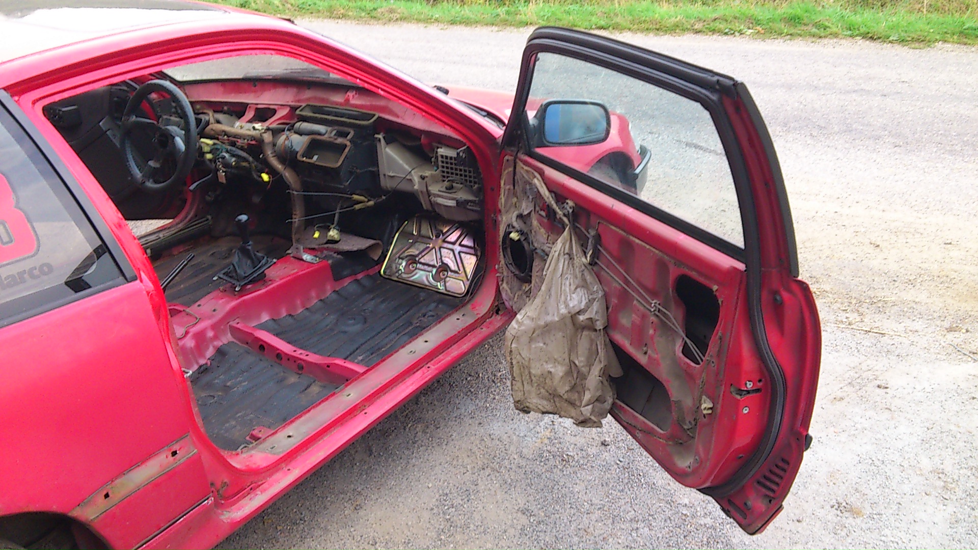 To stesti behem tydne opadlo. Interier byl skoro cely tak do cervena.. tak jsem sehnal jiny origo interier a zacal predelavat ato vlastne komplet.. jak jsem vse odstrojil zijstil jsem ze cero vypada hezky jen z venci... No koupil jsem zkratka vrak...rek jsem si ze ho dam dohromady a bude to dobry..