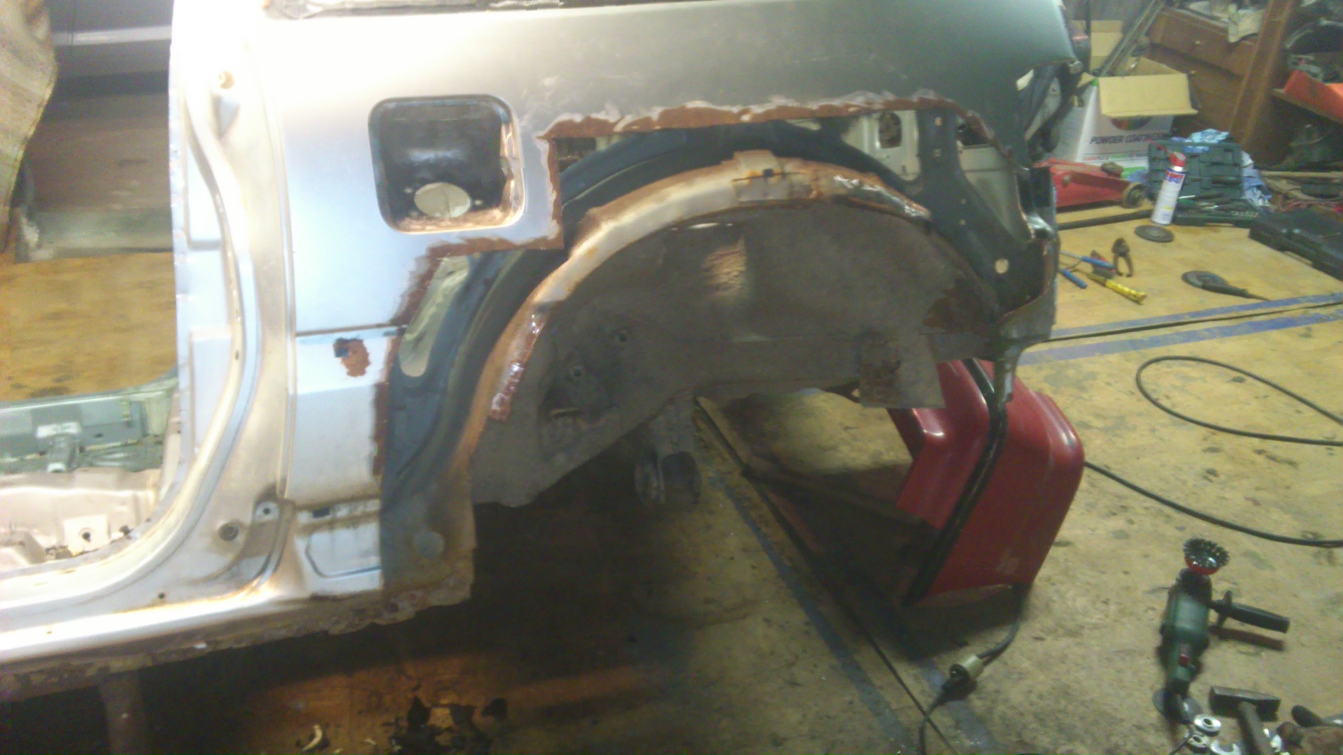 Vyriizl jsem i druhe bocni okno,a zacal jsem pracovat na spodku auta.... Brzdy,napravy,stabiky,nadrz,a vlastne uplne vsechno....