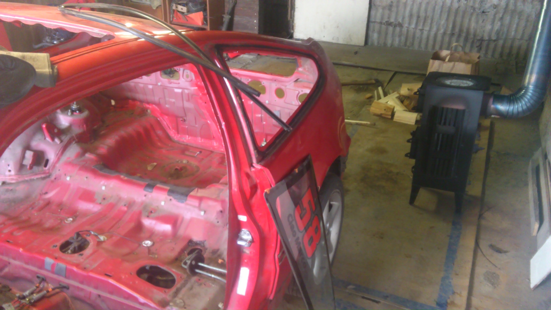 Vyriizl jsem i druhe bocni okno,a zacal jsem pracovat na spodku auta.... Brzdy,napravy,stabiky,nadrz,a vlastne uplne vsechno....