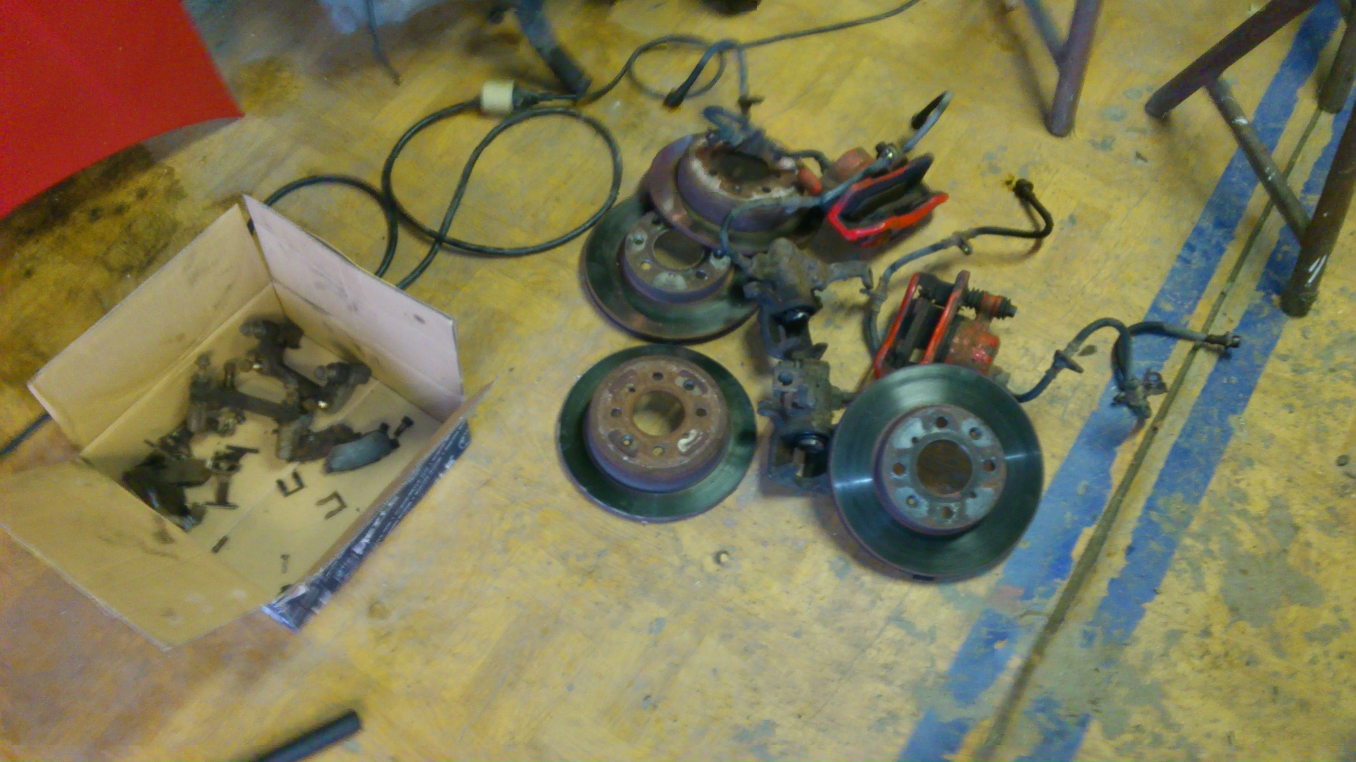 Vyriizl jsem i druhe bocni okno,a zacal jsem pracovat na spodku auta.... Brzdy,napravy,stabiky,nadrz,a vlastne uplne vsechno....