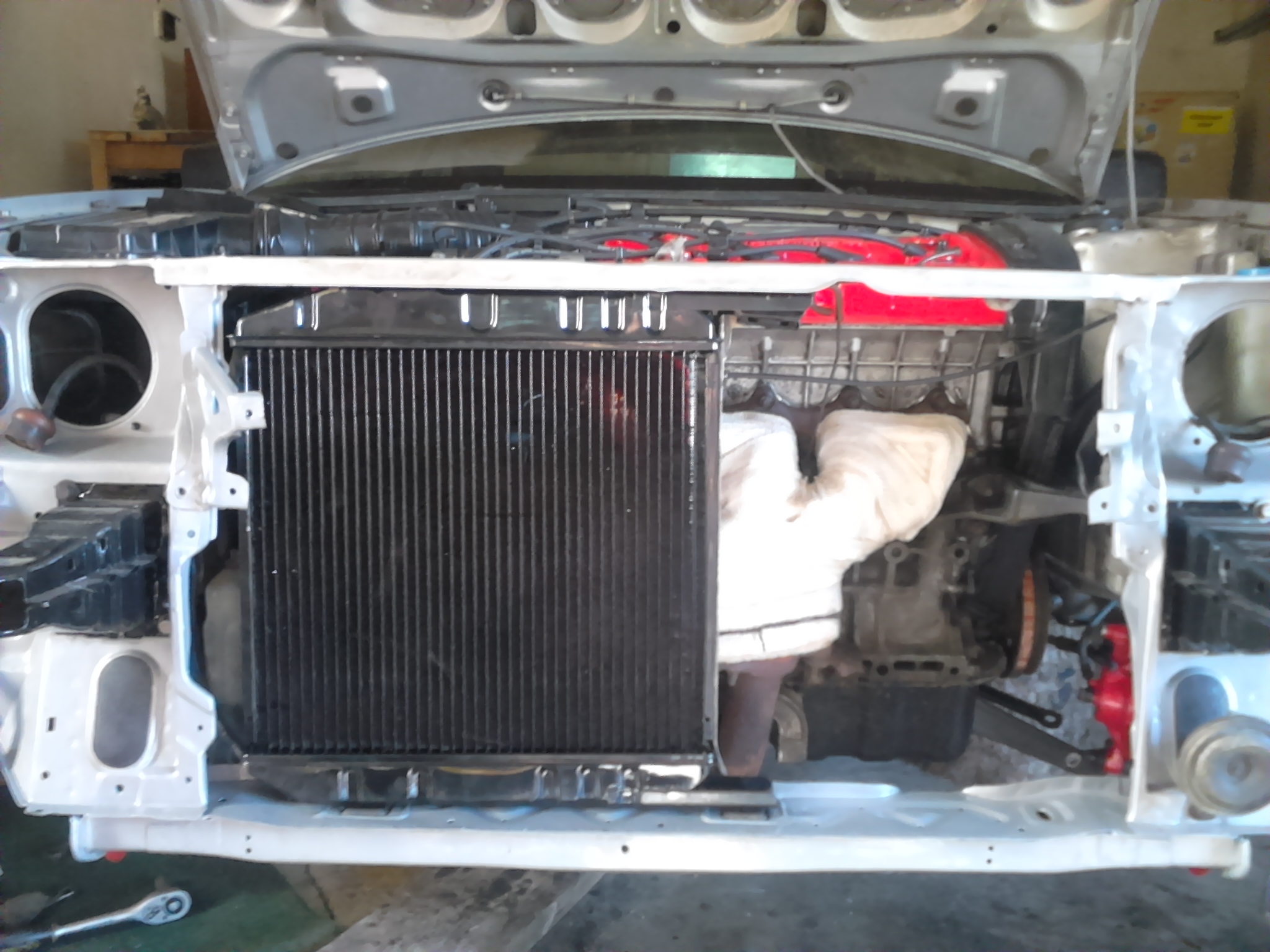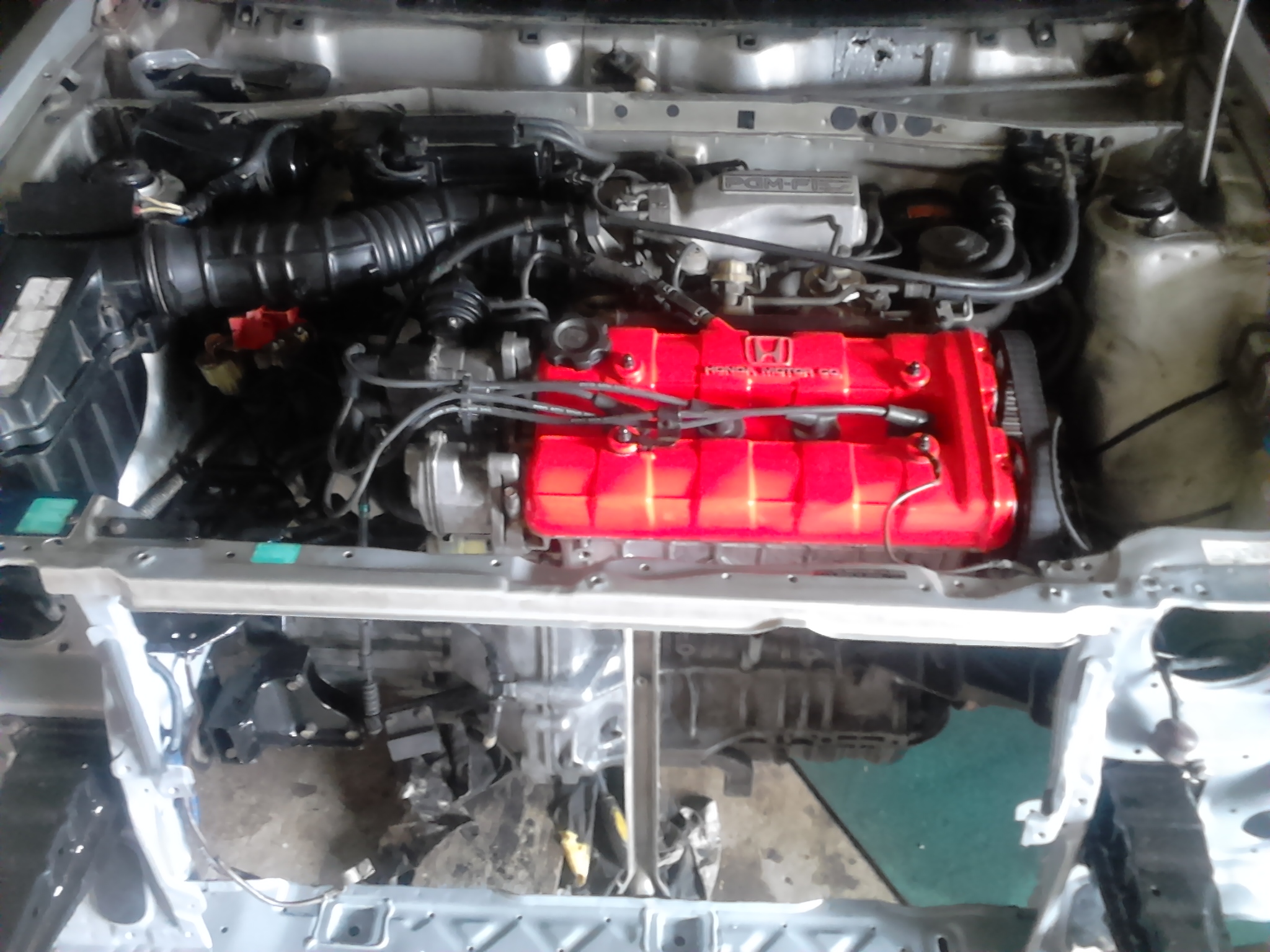 Tak zase pár foteček... Vyměnil jsem spojku, dal zpátky převodovku, víko střiknutý na červeno, a natřenou vanu a nápravu, s novým těsněním všecko. Taky všemožný blbiny, jako jsou držáčky konektorů atd. Jsem natíral skoro všechno, protože to bylo orezlý. Teď čekám na ty silenty, abych mohl dát ramena, těhlice, tlumiče atd. Pak to dám na kola, naleju oleje, dám chladič, svody, dotřu zbytek podvozku, protože zatím mám jen přední polovinu. Snad to do srazu stihnu.