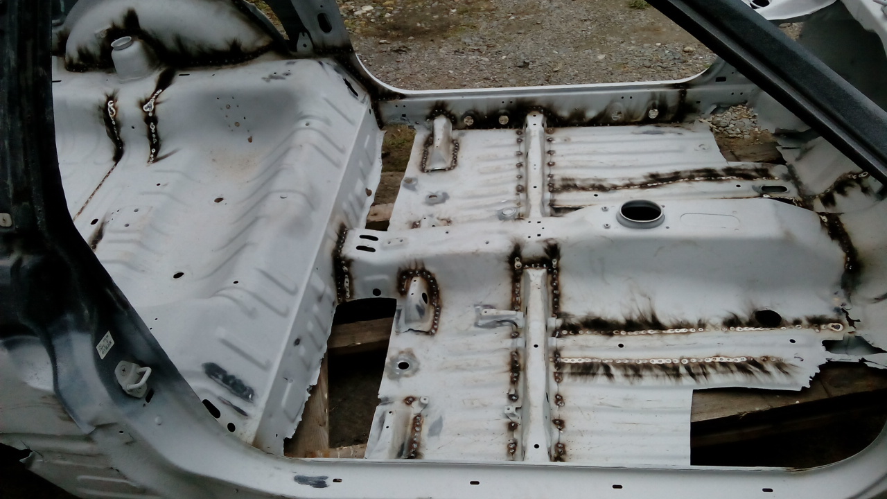 A jak jsem spokojen s prací? Byla chyba jí nechávat stříkat. Věřim tomu, že většina borců co tam přiveze káru jí po otryskání, nalakování začnou vyvařovat. Trochu odrbou barvu okolo místa co vaří a pohoda jahoda. Jenže když chcete probodovat všechny spoje, kde se dotýkaj plechy, tak už to s tou barvou neni to pravé ořechové. Jdou dělat bodové sváry, ale ... Takže v mém případě to byla blbost a druhá věc proč jí nenechat nastříkat je ta, že pak nepoznam, kde co otryskal a neotryskal. Říkal jsem borcovi, ať mi hlavně otryská zrezlá místa, všechny spoje plechů a plochy co jsou OK, tak může nechat. Jelikož jsem s bodovejma svárama s příměsí barvy nebyl spokojen, tak jsem vzal kartáč a odrbal pár míst. A co jsem nezjistil. Po odstranění nástřiku tam byl ještě původní nástřik plechu z fabriky :x. Takže jsem byl trochu zklamanej z práce tryskače, ikdyž to byl melouch. Kdybych za to dal plnou cenu 6000, tak bych určitě spokojenej nebyl. Každopádně mě tam uviděj ještě jednou, protože odrbávat každej bodovej svár je zabijárna :lol: .