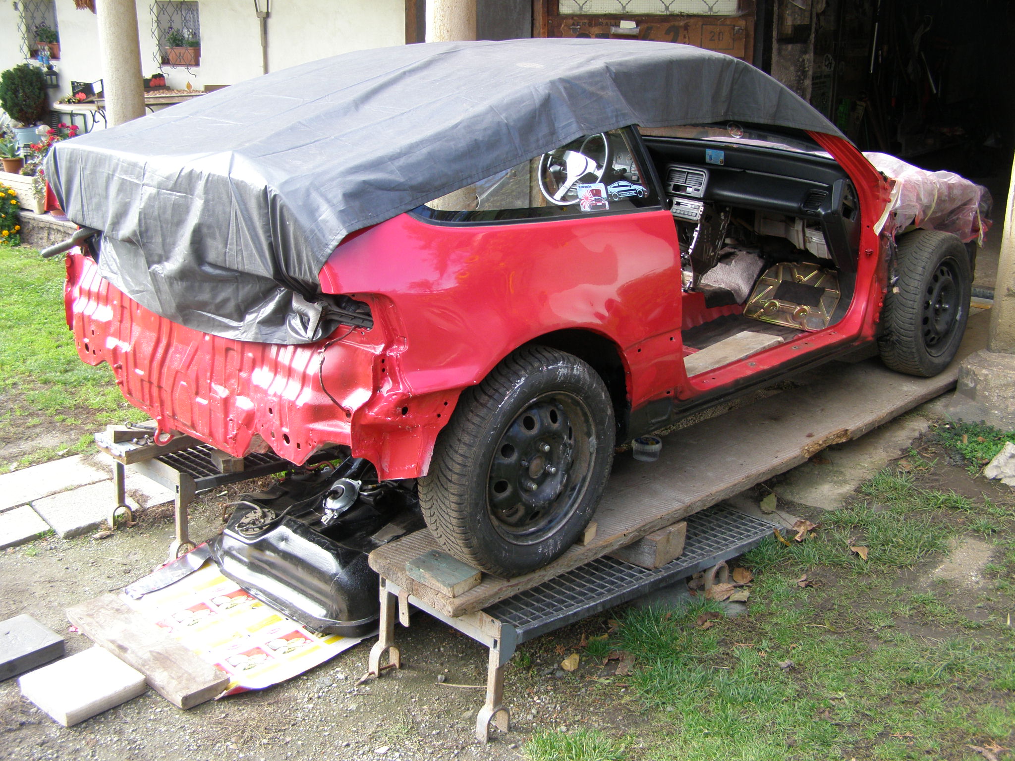Jako poděkování přátelům,kteří mi pomohli v době,kdy mě nebylo moc do zpěvu po 5.březnu,kdy jsem rozbil na návštěvě v Praze moje milované CRXko.Dám sem do nového příběhu pár fotek z renovace.Nevim jestli se podaří vyhledat obrázek,kdy to všechno začalo.Teď už je situace,kdy už pomalu skládám,popř.renovuji díly,které to už potřebovaly.Popohání mě chuť už se zase svézt se Vtec- em.Neumím posunout na další obrázky ta až někdy příště zobrazím další fotky.Zdraví Standa.PS. na počitači je to pro mne těžší než v dílně.