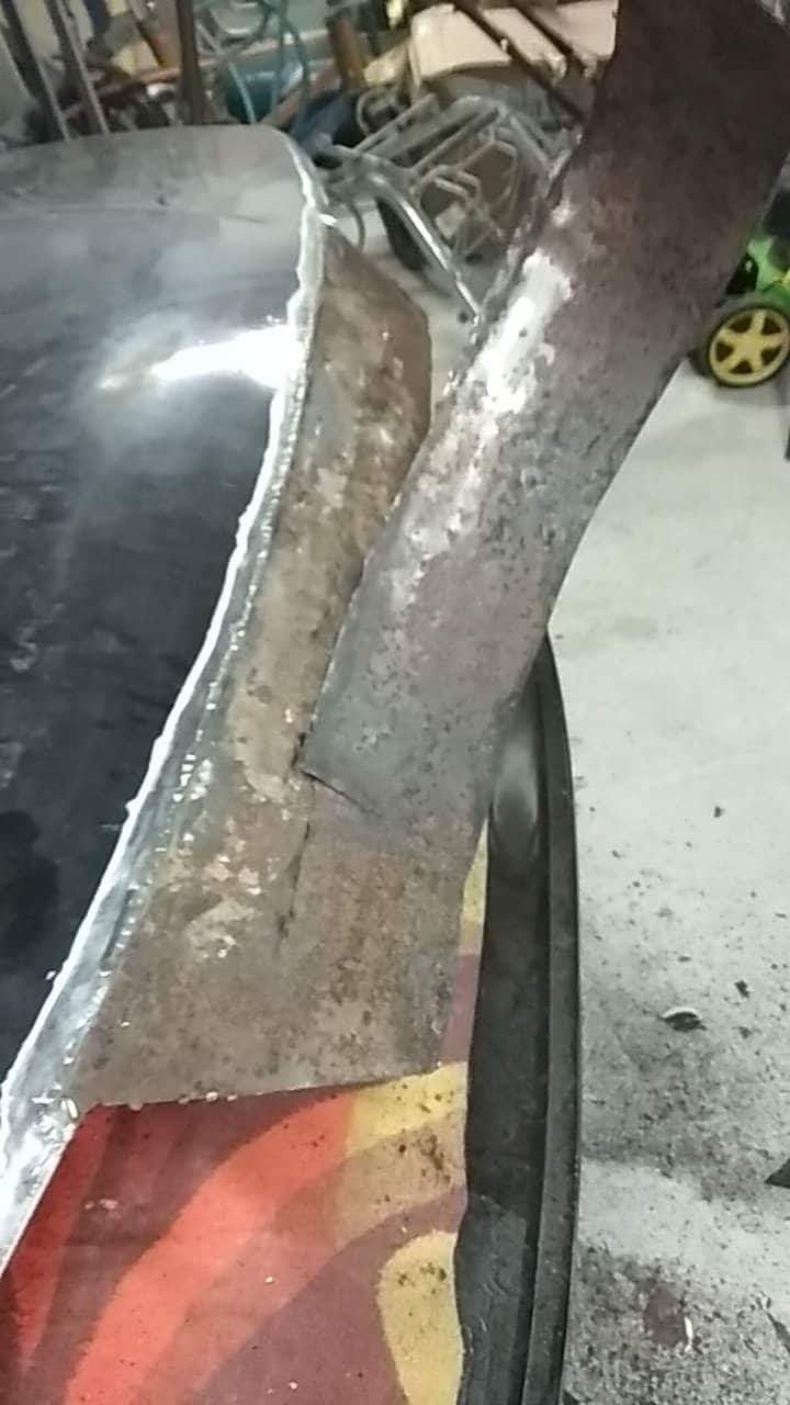 Koroze, popraskaný kit v tloušťce snad 10mm+, místy úplně bez plechu a drželo to jen silou vůle..
