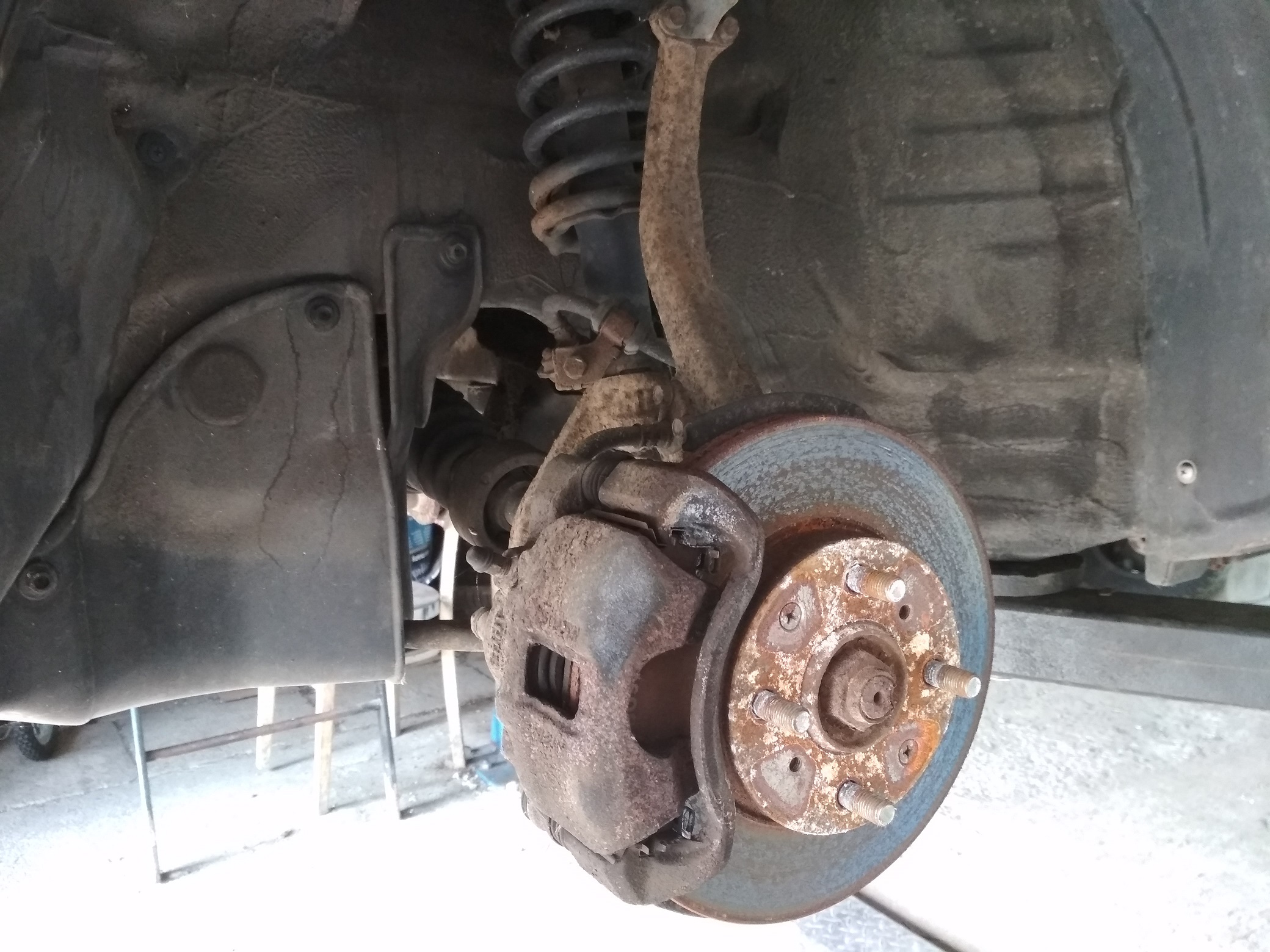 Momentálně je auto už 14 dní na zvedáku,protože není moc času a řeším ty zmiňovaná přední ložiska. Levou poloosu jsem musel povolit vercajkem na zetory ;) a byla úplně přirostlá k těhlici,ale nakonec se podařilo mi ji podařilo dostat ven 8-)