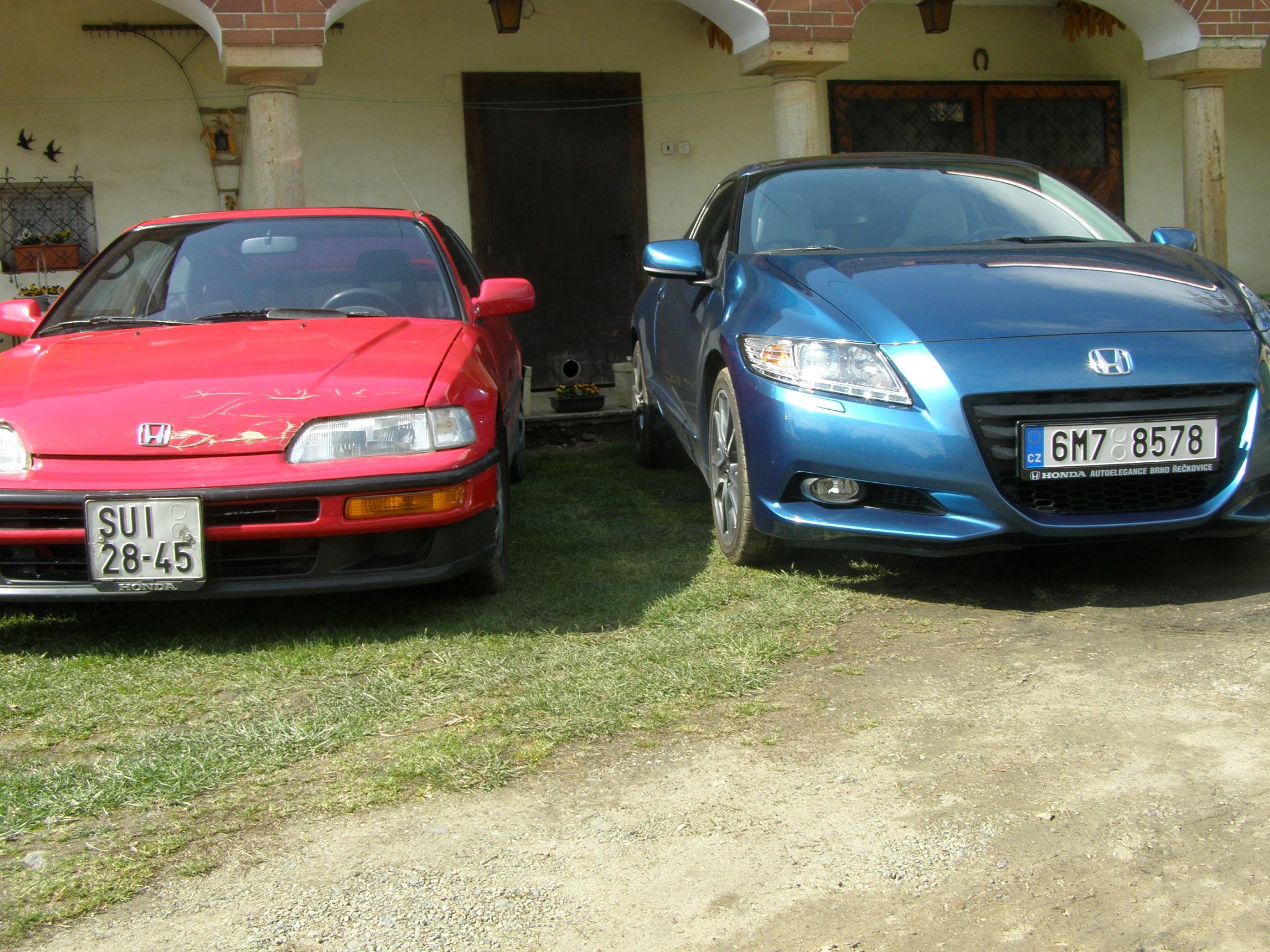 Zdravím po delším odmlčení kamarády,kteří mě drželi palce,když jsem po ťuknutí na Štedrý den24.12.2020 zničil pravé světlo a kapotu.To světlo jsem sehnal(v Německu) kapota mě čeká s opravou na lepší počasí.Teď jsem si ještě pořídil trochu novější CRx ku a to CRZ.Jsem z toho auta nadšený(jak je hbité,Tvrdé-nekroutí se,jede jak po kolejích-úžasně sedí na silnici a.t.d. Je v té nejvyšší výbavě.staré 10let-najeto 64tis.historie doložena,faktůry na vše-vč.výměny oleje a.t.d.Letní kola 17ky od Hondy,zimní orig.16ky.Výbava GT TOP se skleněnou střechou,perfor.kož.sedačky(vyhřívané).Teprve se s ní seznamuji a čtu si v manuálu.Teď dám pár srovnávacích fotek s mojí EE8.