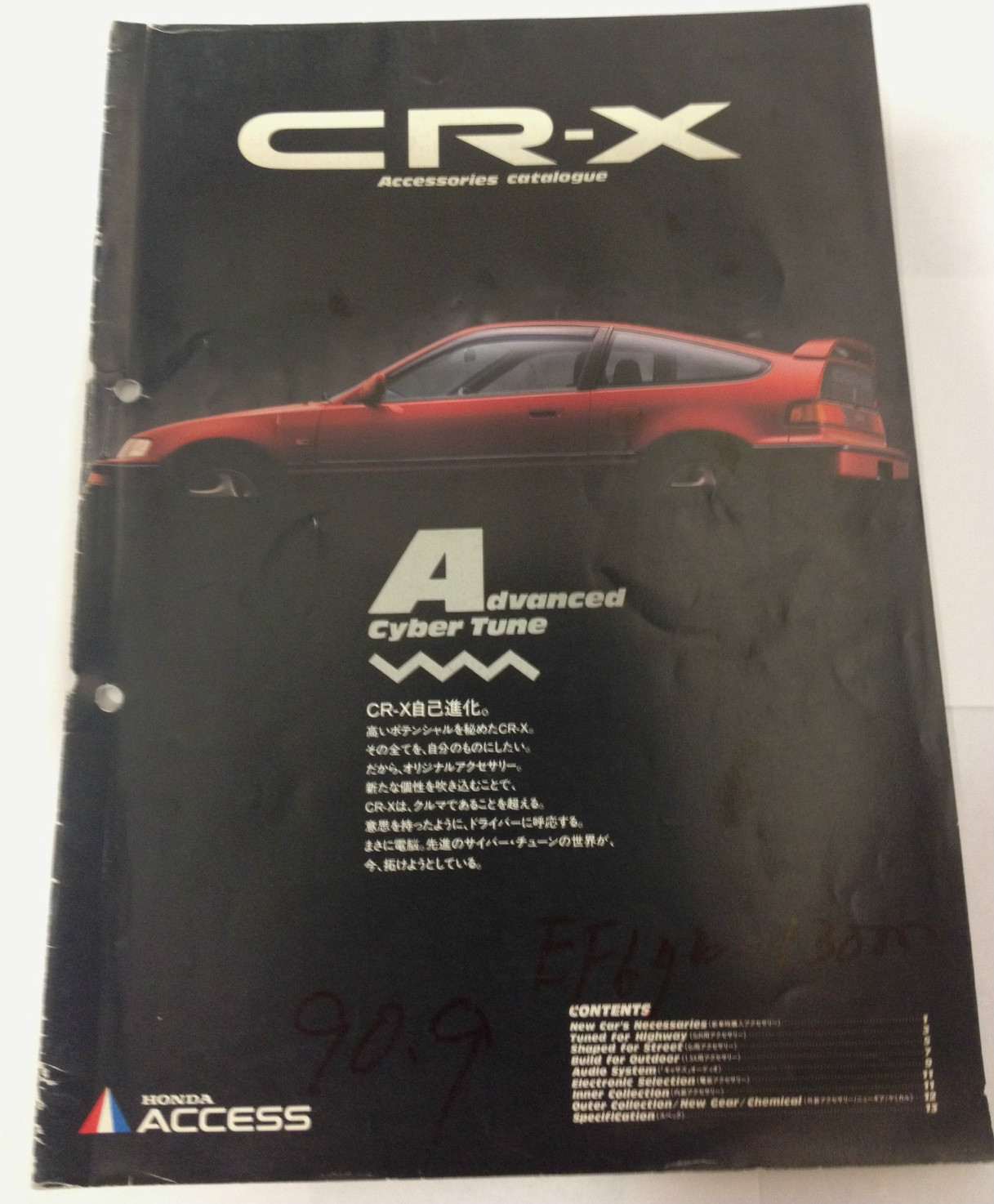 Tak mám tady pro vás taky jednu brožurku. Je to katalog originál doplňků pro CRX a pokud někdo umí dobře japonsky, tak si určitě i dobře počtete