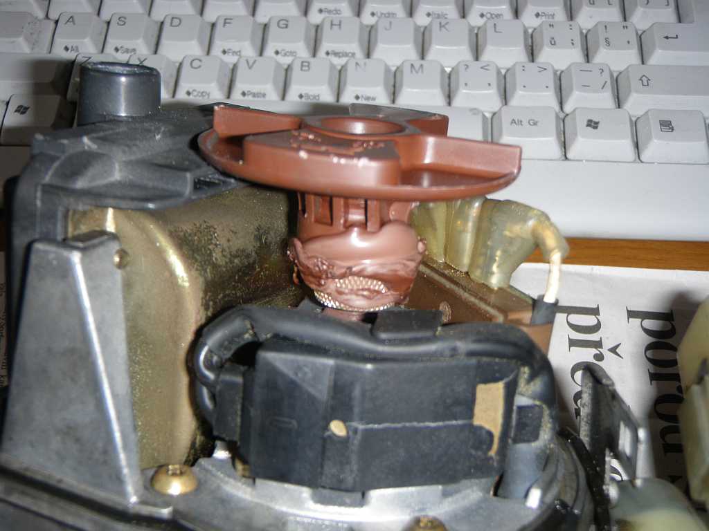Největší problém u těchhle rozdělovačů není ložisko, ale mosazné šrouby, které drží hlavní desku a které se místo povolení ukroutí, protože jsou jištěné lepidlem. Našel jsem kdysi radu, že je nutno je nahřát, dělám to velkou pájkou, ale výsledek je přinejmenším nerozhodný, ba dokonce asi spíš prohrávám. U Bučise jsem povolil jeden, ukroutil dva a v domácích podmínkách nedokážu ty zalomené šrouby čistě odvrtat a obnovit závit.