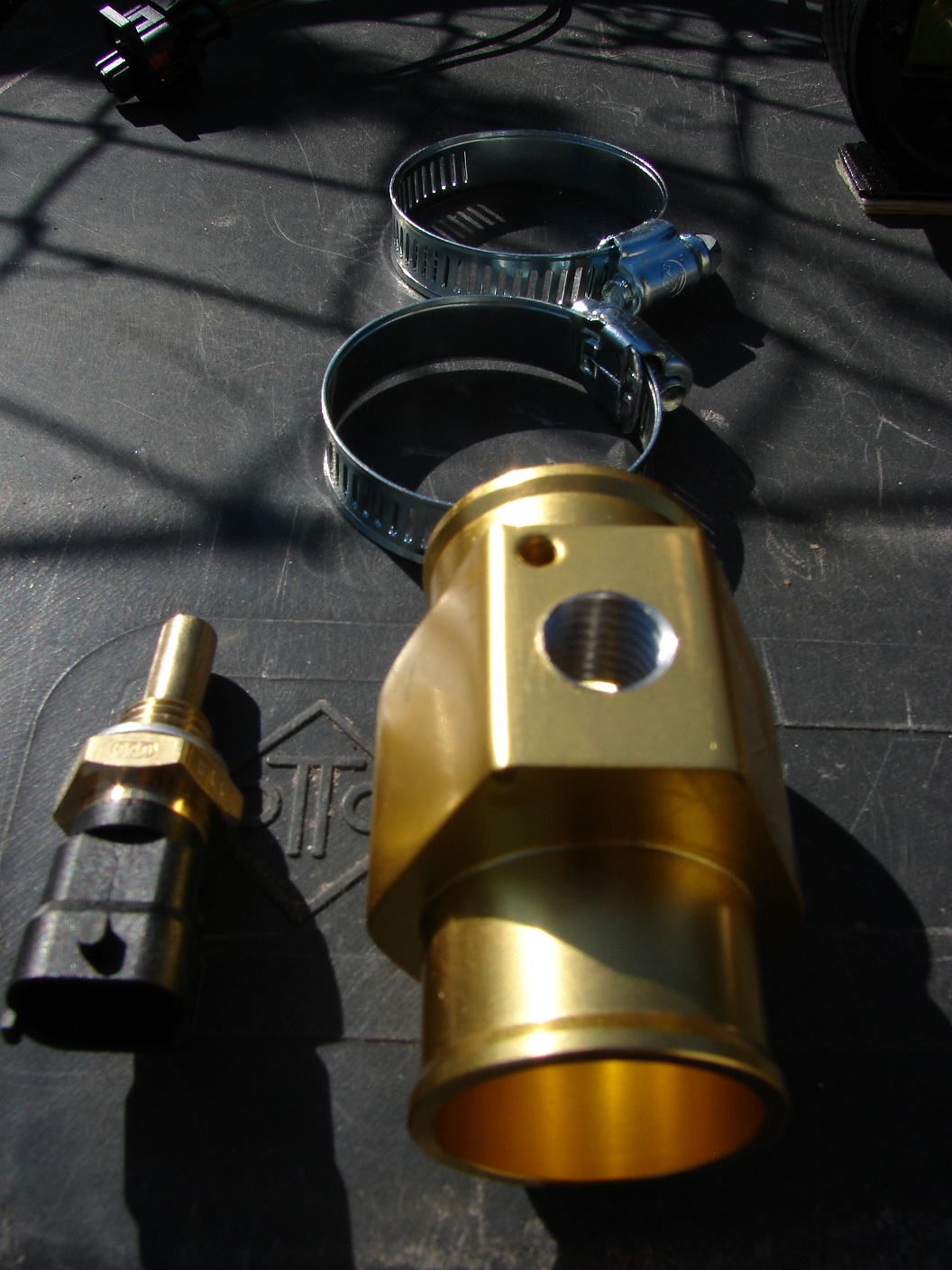 Tak dnes se mi konečne podařilo zprovoznit duální budík na měření teplot vody a oleje od Ljaye.Budík byl doma už delší čas, tak jsem aspoň vymýšlel jeho umístění a s tím jsem spojil výrobu nějakého držáku, jelikož se mi nechtělo žádný kupovat....no nakonec to dopadlo tak, že jsem jich vyrobil asi 7 evoluci *vytlem* ale teď už jsem spokojený :) V mezičase čekání na čidla a konektory jsem si nakoupil "sendvič" mezi olejový filtr a blok.Dále bylo potřeba koupit mezikus na hadici k chladiči.Tyto dva prvky jsou potřeba k montáži čidel, ale mají zavit M10, zato čidla jsou M12x1,5.Čili bez převrtání děr a vyříznutí nových zavitů se to neobešlo.A tím bylo vše připravené k montáži.Jen ještě zmíním, že budík ukazuje aktualní hodnoty(umí je i ukládat) a ma i LED kontrolky, které mění barvu podle teploty:málo-oranžová, provozní-zelená, větší červená, největší blikající červená.Ještě má i akusticky signal,což je paráda :)