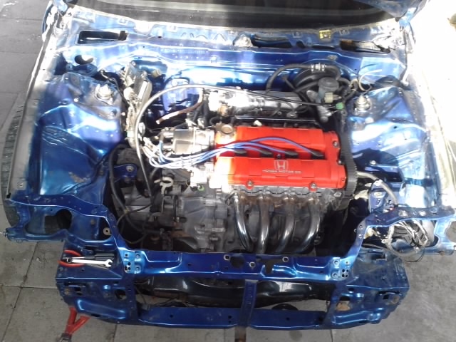 Tak pokračuju dál. Konečně jsem se zbavil zadního nárazníku, položil trochu k zemi, nalakoval ventildekl a koupil orange pozičky *dance* následovat bude hliníkovej plech pod motorem (trochu se bojim o olejovou vanu a vyfuk) a nový výfuk. Chci taky jiné tažné oko něco na způsob co dělá Benen *dance* Samozřejmě kola dál hledám ale nemohu si nic vybrat *dash*