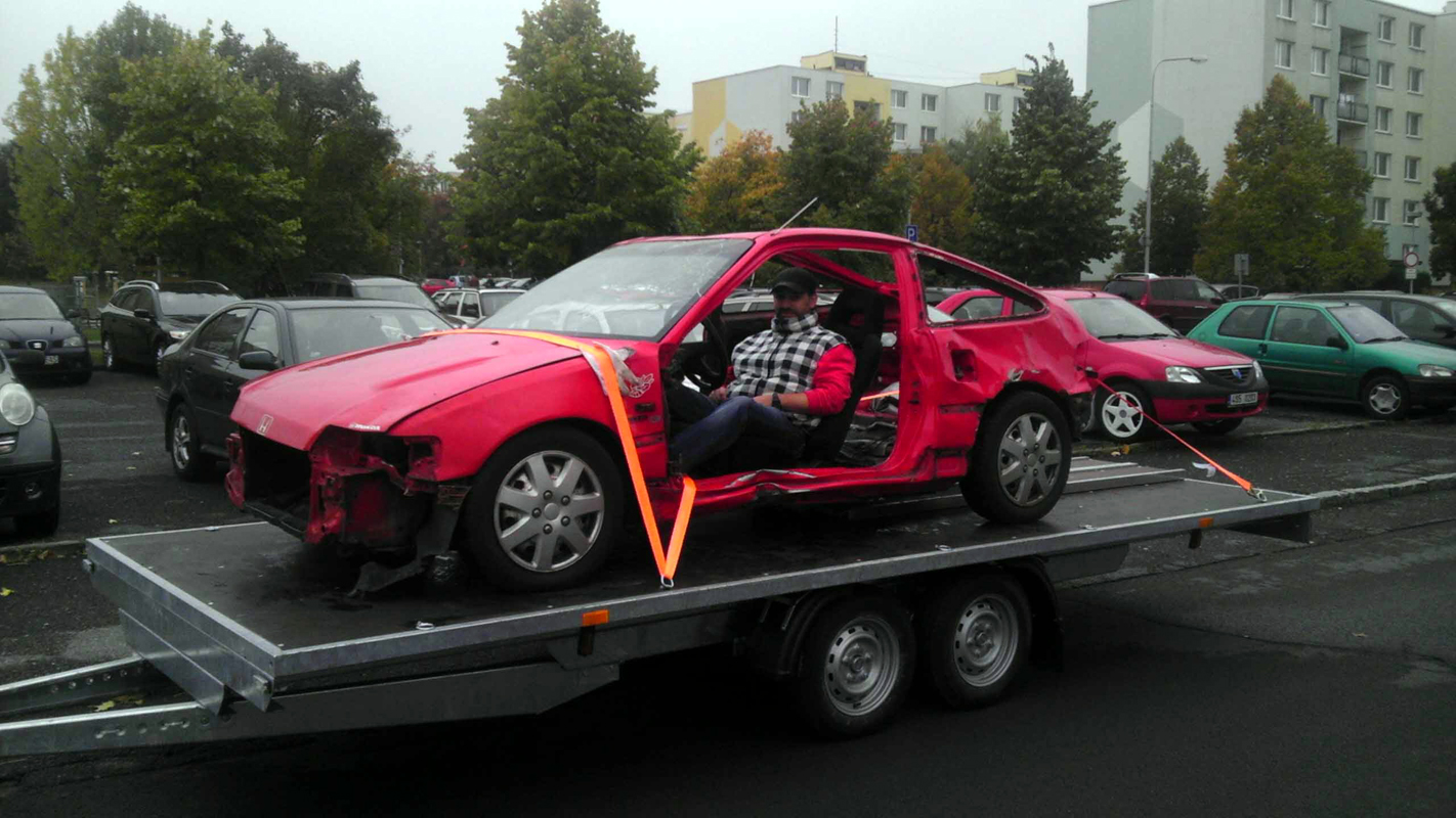 Červená průběžně rozebrána, pak naloženo a odvezeno. Celková délka Civic + přívěs = 11 metrů :oops: