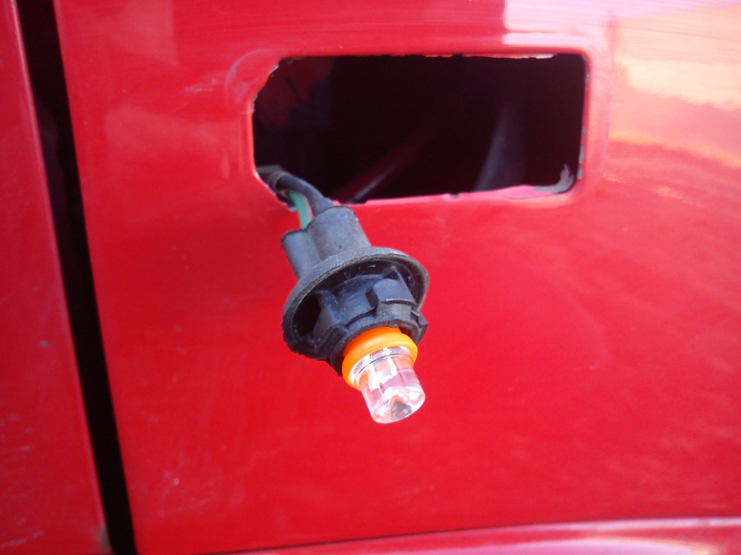 tak jsem vytáhl červenku a pustil se do oprav. Chtěl jsem toho zvládnout mnohem víc ale zahnala mě domů zima, únava a hlad, takže jsem stihl pouze dopasovat dveře u řidiče, což je primitivní záležitost ale když se kuli takový jednoduchosti musí rozebrat blinkry, pozičky, nárazník, kryt prahu, plynové vzpěry, podběh a ve finále blatník tak se mi do toho 2x moc nechtělo ale aspoň už to mam z krku. Při tý příležitosti jsem si i vyměnil originál staré šroubky za originál nový a vyměnil žárovičky v bočních blinkrech za ledkový, zkoušel jsem tam dát bílí ale to hodně prosvítalo tak jsem zkusil oranž a vypadá to dle mě daleko líp. Dokonce jsem si konečně vzpomněl na křídlo které už hodně dlouho slibuju členovi chosse.j kterému se chci omluvit za svojí děravou hlavu