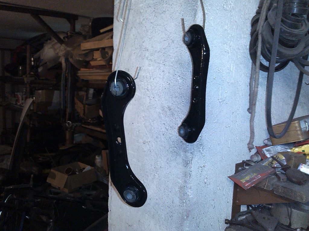 Aktuálně mně čeká výměna ramínek sbíhavosti zadní nápravy, protože stávající jsou zarezlý v silentech a tak nejde seřídit sbíhavost. Náhradní ramínka pro nastavení sbíhavostí mám už připravený. Nakonec jsem koupil starší (díky J!R!) a repásnul je (nové silenty + barva). Původně jsem je chtěl měnit už dneska, ale kvůli počasí jsem to musel odložit.