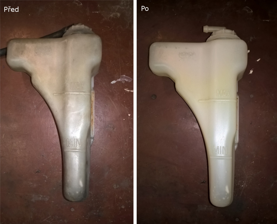 Nejdřív bych chtěl poděkovat Lukasovi28 z HC za darování expanzky z 6g civica. Potřeboval sem totiž nějakou hlubší, abych zabránil vylevání chladící kapaliny při akceleraci. Na netu sem narazil na tip jak jí vyčistit pomocí bělidla na prádlo a celkem to fungovalo (viz foto).