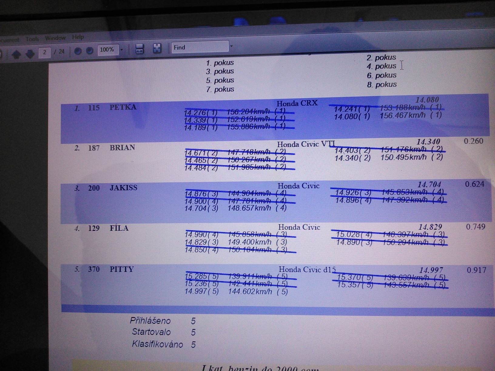 tentokrat zase 1místo takže cesta se vyplatila Shaka píše:Asi si sa trochu prerátal, ale nehcem kritizovat.Robim priamo tam, kde sa tie matadory vyrabali a mozem povedat, ze minimalne od 2008 roku sa uz nerobia odkedy sa zrusila vyroba športovych plastov v matadore. Inak chvalim pekny čas si dal. tiež sa pozeram po slikoch nakolko som isiel jeden sprint na civilakoch a nebolo to ono.Len tak pre zaujimavost nevies vahu auta cca na sprinte dik.