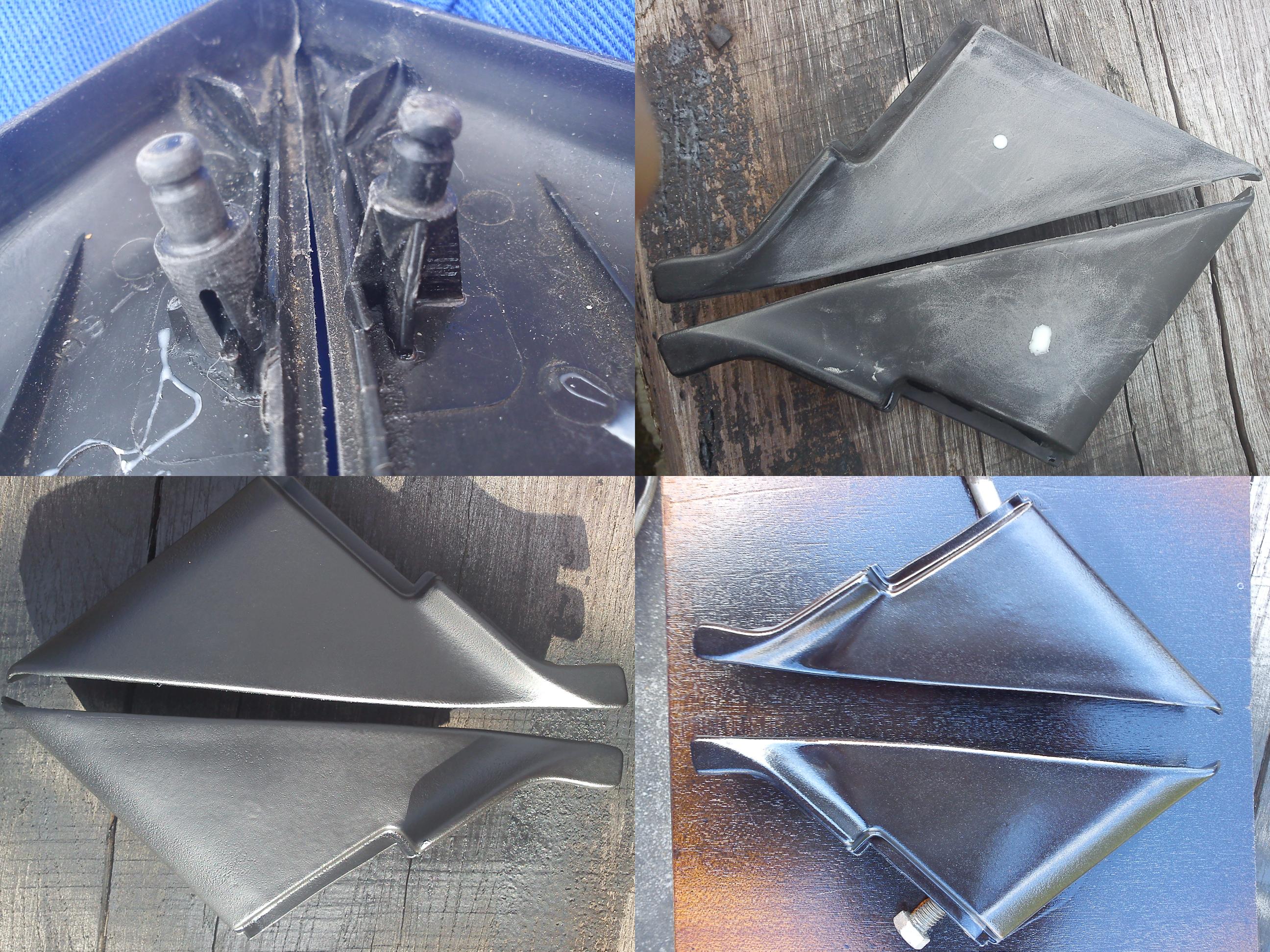 Opravil jsem konečně ty trojúhelníčky zrcátek, byli v nich vyvrtané dirky tak jsem to zakitoval přebrousil a nalakoval a byly taky ulámané špuntíky které jsem si musel vyrobit a nalepit.