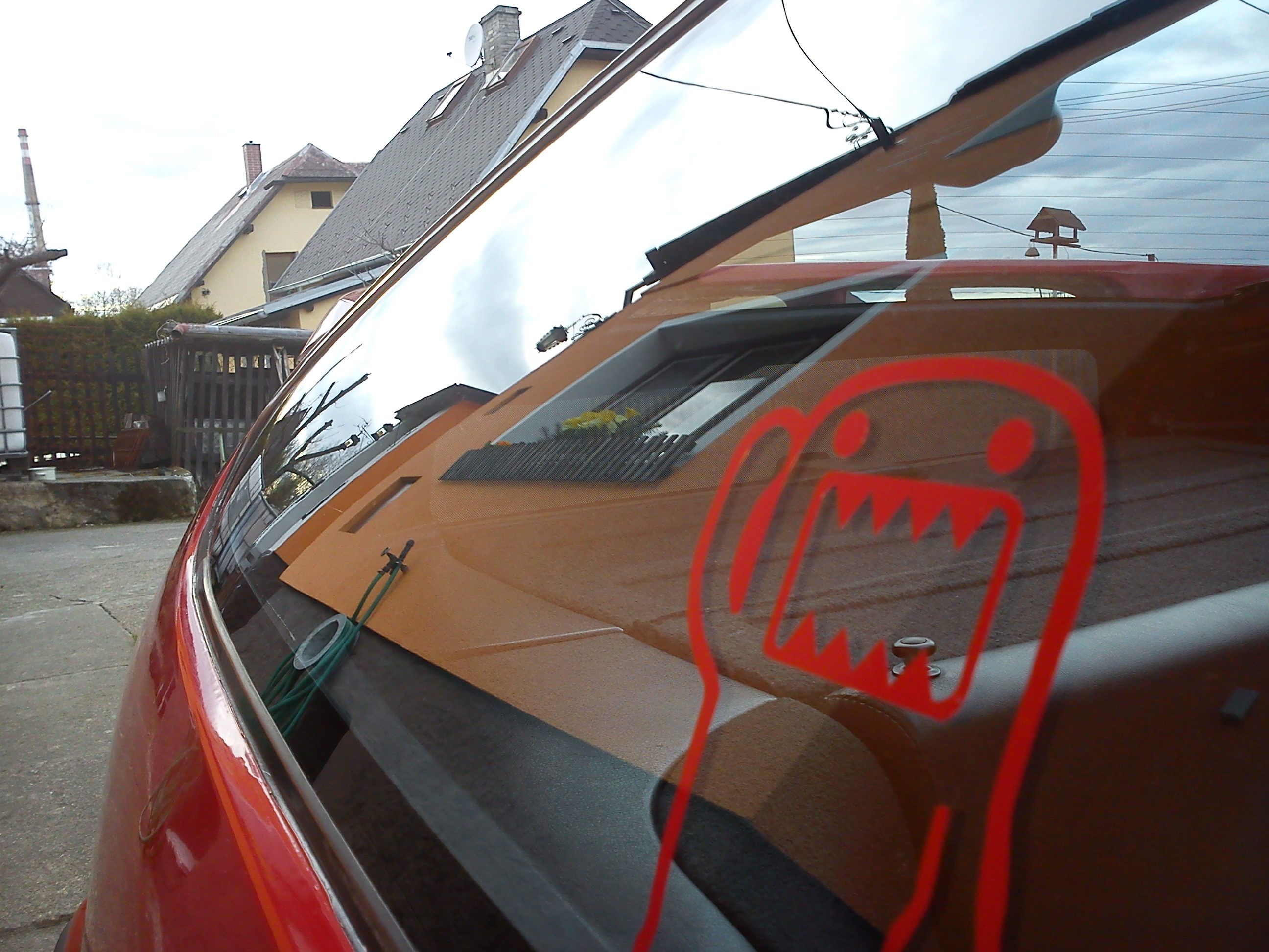 Udělal jsem si nápis na čelní sklo, je to zrcadlově zevnitř aby to něco vydrželo ale stejně se budou muset ještě vytlačit všechny bublinky aby to trošku vypadalo.