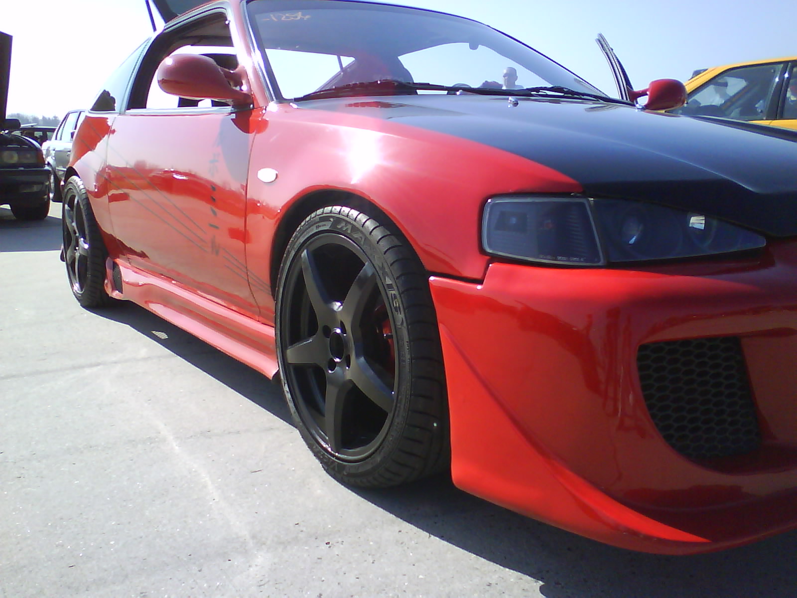 Úpravy: Generálka motoru (nyní cca 6tis. km), keramické svody 4-1, otevřený výfuk (3A RACING), ponechán rezonátor, katalyzátor spálen při zkoušení nové ECU. Odlehčená řemenice cca 250g, odlehčený setrvák o 3,5kg, spojka EXEDY ORGANIC, otevřené sání s K&N filtrem, na 2x srovnaná hlava. ECU jsme prodloužili dobu vstřikování a posunuli omezovač na 8100ot/m, což je maximum pro Z5-tku, pokud jí chceme uchovat pohromadě (pak jedině tvrdší pružinky, aby se ventily stíhaly vracet). Výkon odhadovat nebudu, chystám se v nejbližší době na Zbraslav na brzdu. Cokoliv nad 126bhp beru :0)