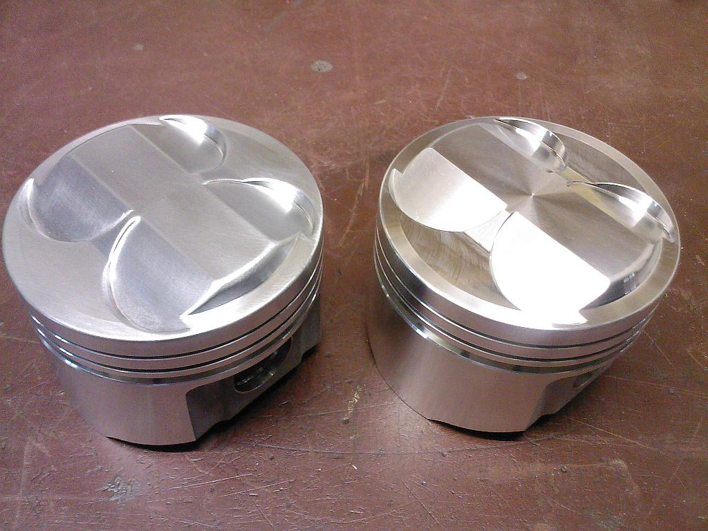 Na druhým obrázku je vidět porovnání upravenýho pístu (vlevo) oproti originálnímu (vravo)