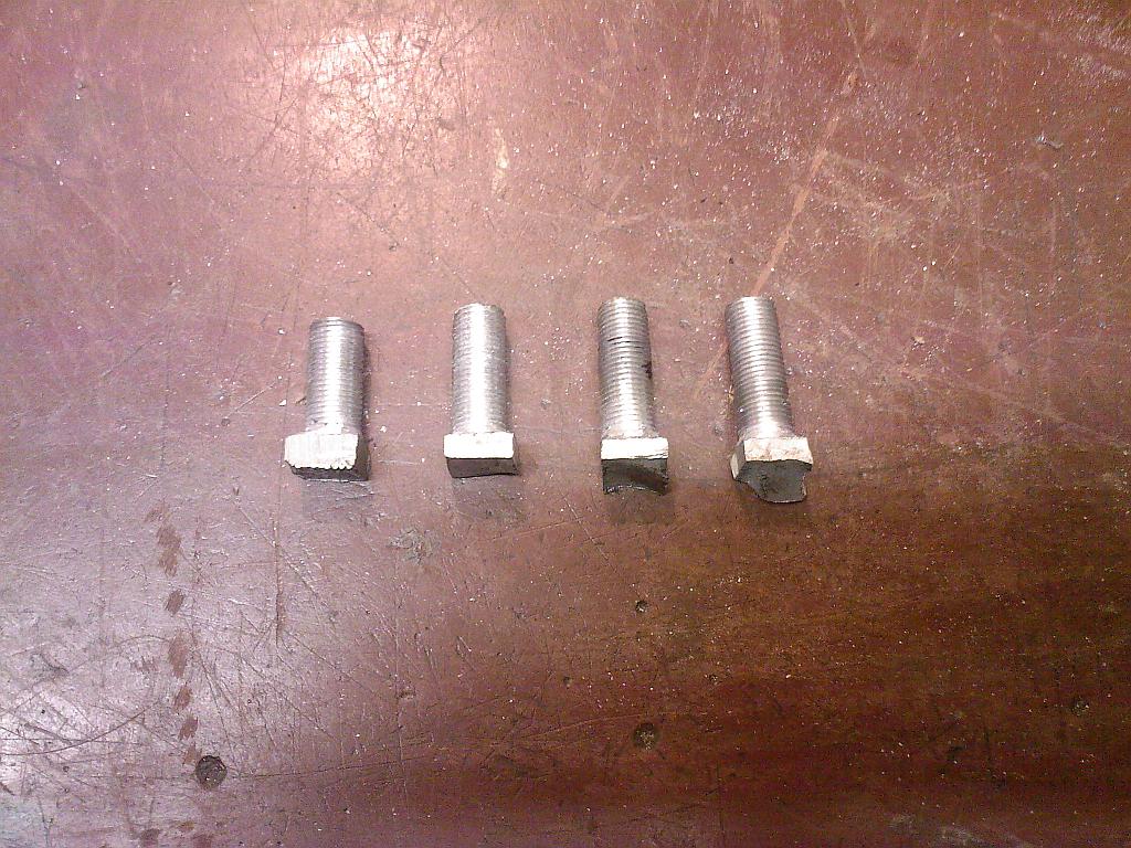 Dneska sem konečně měl čas sehnat závitník a závitový očko M10x1, takže sem se pustil do výroby postů. Jako zdroj materiálu sem nakonec použil jeden starý blok co mi ležel doma. Opracovávat to jde skvěle, takže je to docela prima práce. Zatím mám hotový čtyři posty zbylých 8 dodělám o víkendu až na to bude pořádně čas. Délku postů sem zatím neřešil. Ta se doladí, až je cvičně našroubuju do bloku.
