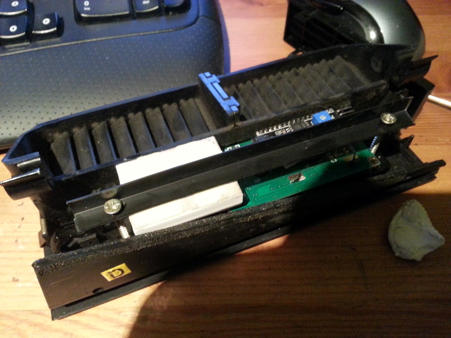 Pokracujeme odznova, premyslel som par veci a vyzera to rozumnejsie. Pomalicky davam dokopy displej a tlacitka namiesto hodin. Chcel som pouzit povodne tlacitka z hodin ale uz maju svoj vek a nespinali tak ako by mali tak som musel objednat podobne, hadam budu sediet. Pustam sa do vyroby mojho prveho plosaku. Upevnenie zo zadnej strany hodin je zatial divoke ale drzi :D