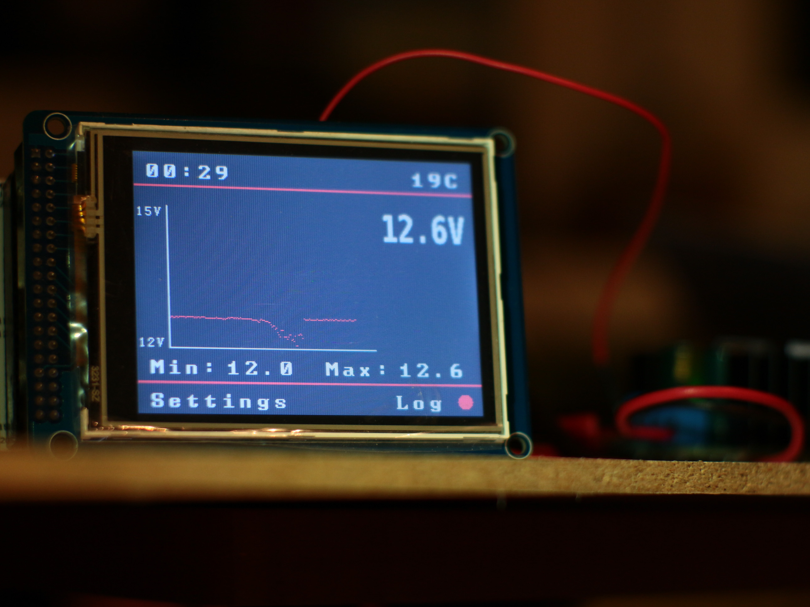 Su v podsate dve obrazovky, jedna so vsetkymi udajmi z cidiel. Druha kotra po stlaceni urcitej hodnoty zobrazi graf danej hodnoty predom nastavenom case aby sa dal sledovat priebeh. Dlzka casu grafu je volena individualne.