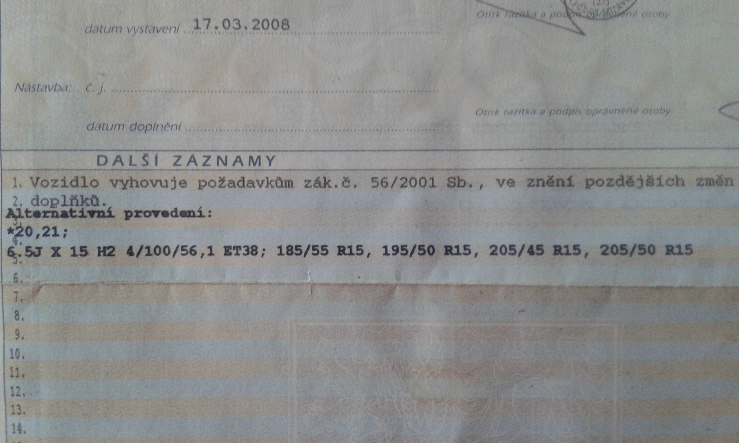 Koukám do TP a mám tam dopsaný dokonce 4 rozměry pneumatik.