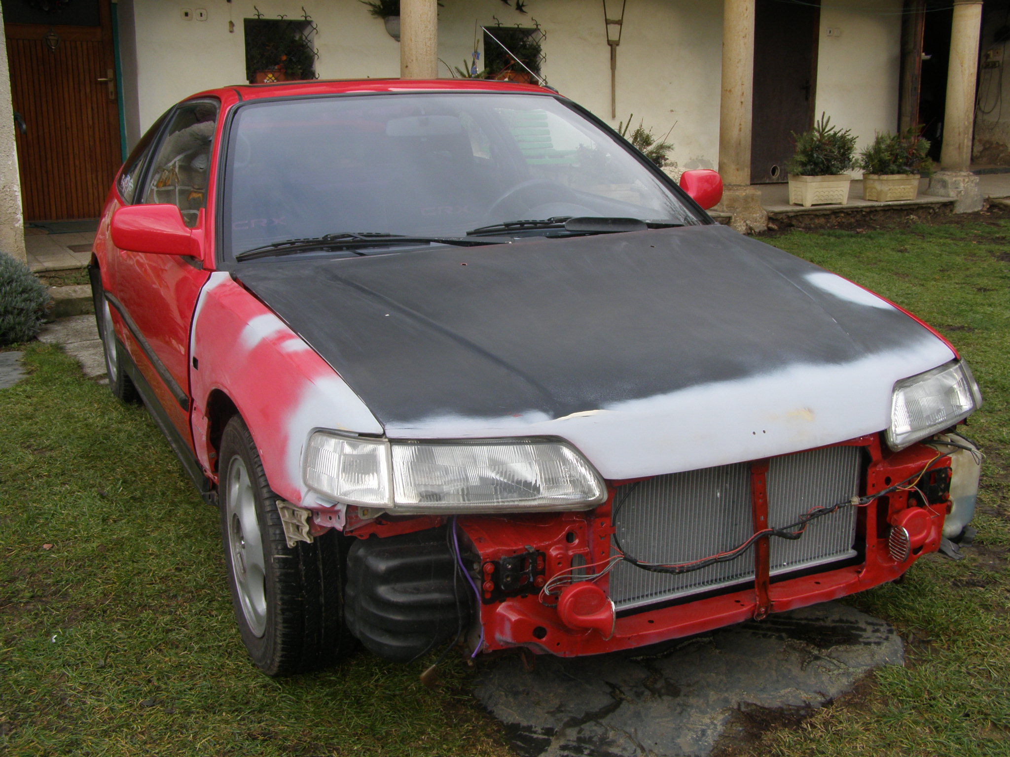 nákladního MANa.Odnesly to opět ty nejdražší dily(světla,pozička,kapota,chladič,baterie a pomačkaný PP blatník.Měsíc jsem na to koukal,sháněl na hromádku potřebné díly.Zase se potvrdila pravda,že mít kamarády je lepší než ranec peněz,(zvlášť v případě že máte CRXku).Tyto díly jsou prakticky nedostupné.Už když jsem roztahoval sítě do Polska,tak se ozval kamarád