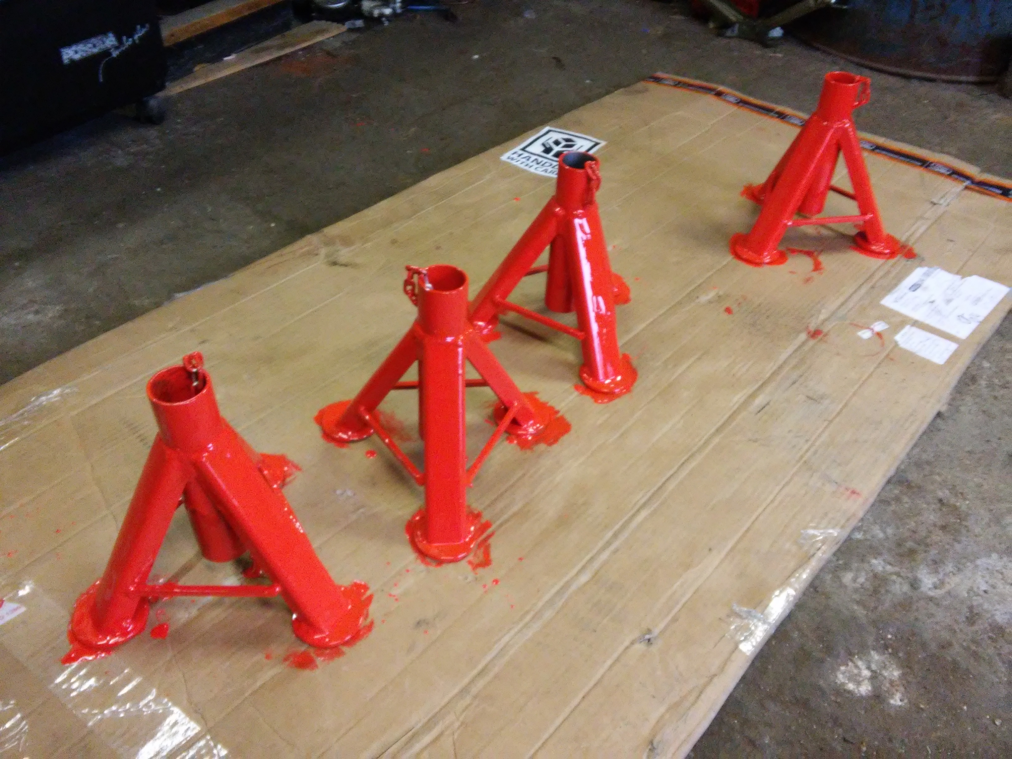Konečně mi dorazil i středový díl výfuku a vyrobil jsem si kozičky, tak budu moct auto přes zimu postavit na ně a budou se dělat zas drobný úpravy. V nejbližší době mam v plánu přelakovat kola na bílo, třmeny na červeno, opravit zrcátka (řidičovo se hrozně klepe a spolujeydcovo jsem sundal o vjezd do dvora v Praze u Dudli
