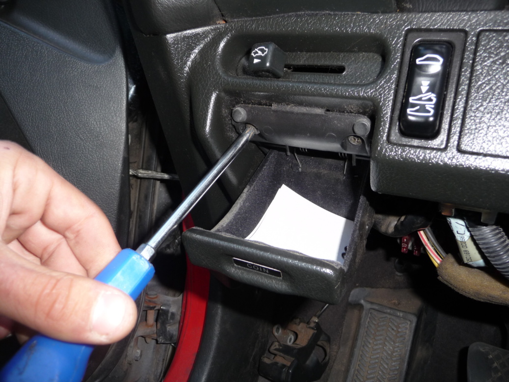 Druhým krokem pro snadnější přístup bude odmontování kastlíku na mince, který drží jeden šroubek vespod a dva z vrchu.