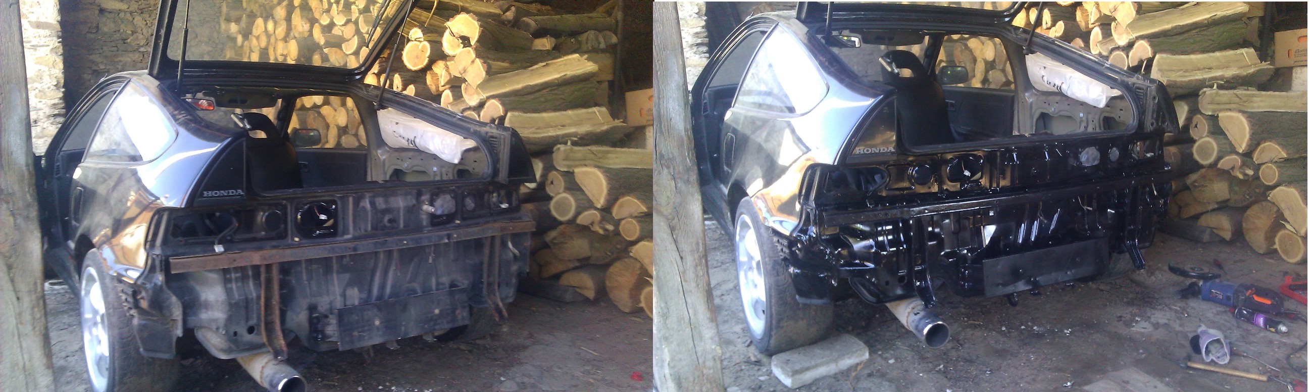 Aaa ted zrovna jdu zas delat na CRX,mam plan komplet precalounit interier,dat nove koberce ale jako prvni vse dukladne obrousit a striknout.Hodim sem pak nejake dalsi foto.Hu haa HONDA